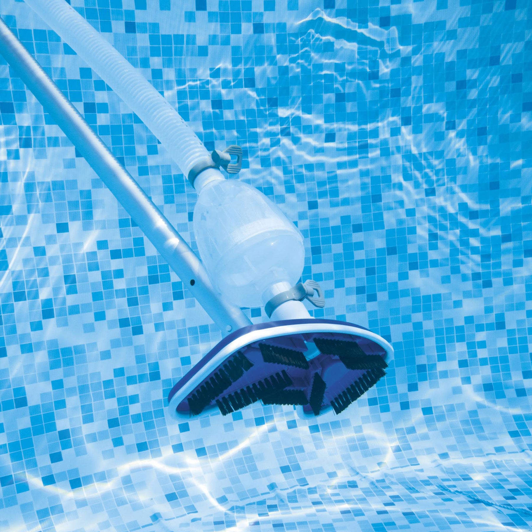 • Pool vacuum attaches to filter pump to clean pool walls and floor