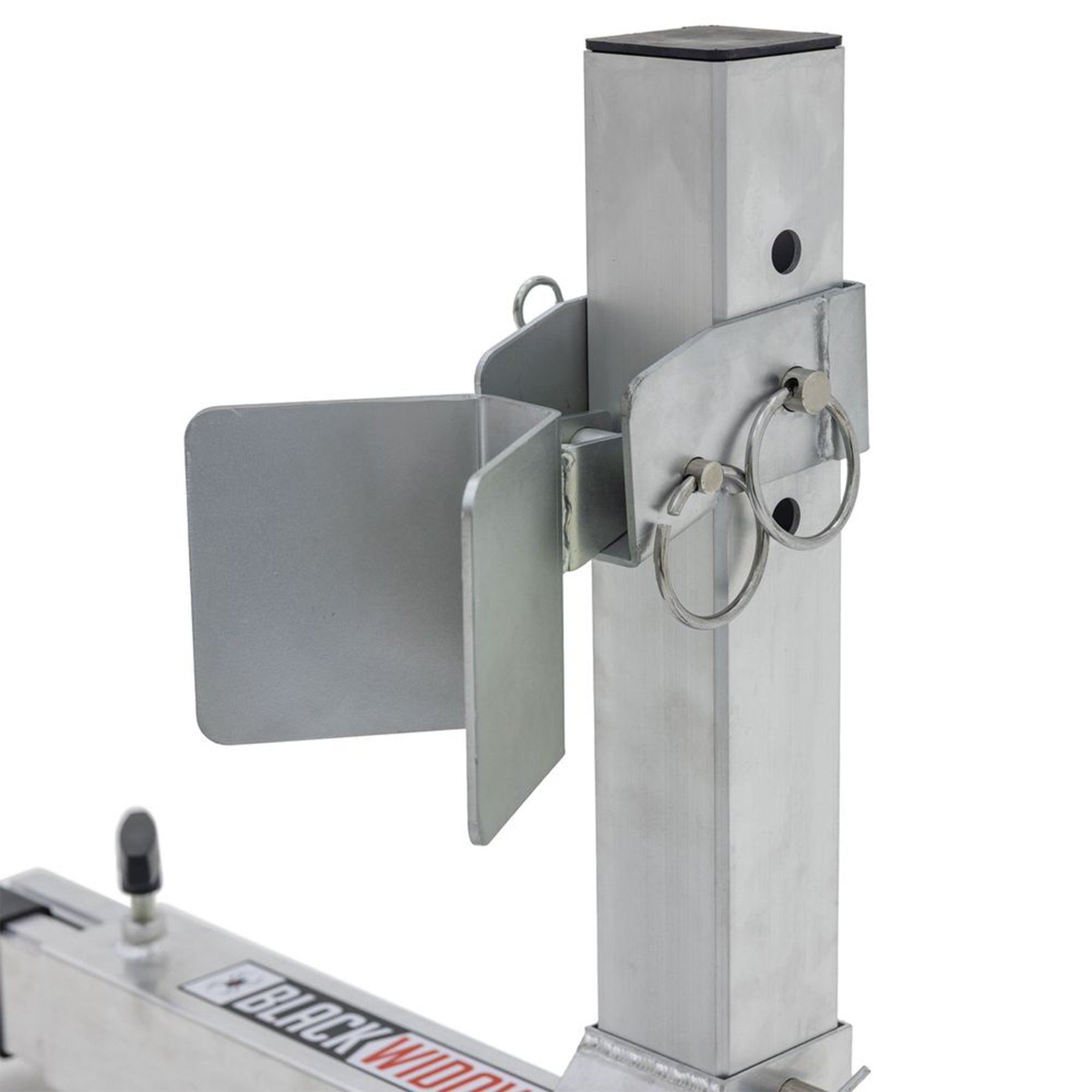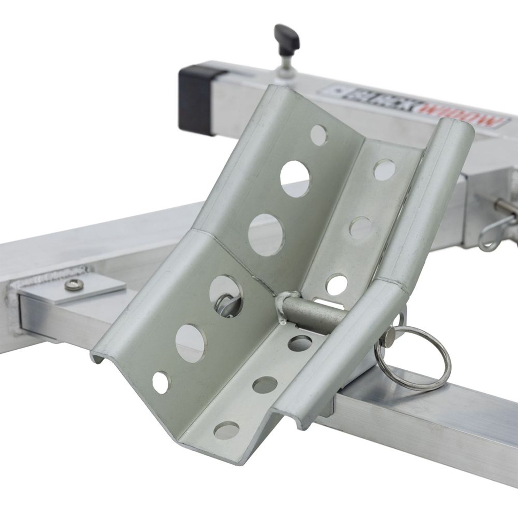 • Front arms extend from 43 to 108 inches, rear tire cradle adjusts from 28.75 to 32 inches, and stop adjusts from 14.5 to 18.5 inches