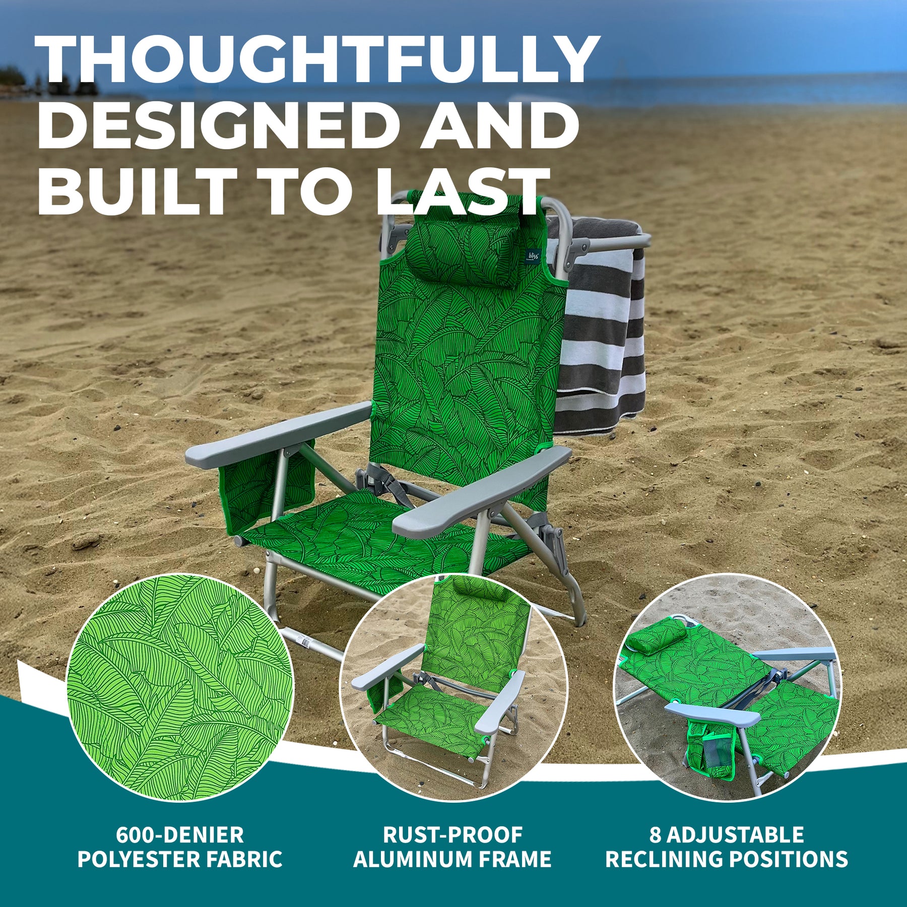 • Backpack beach chair adjusts to 8 reclining positions, including a fully reclined option for maximum comfort