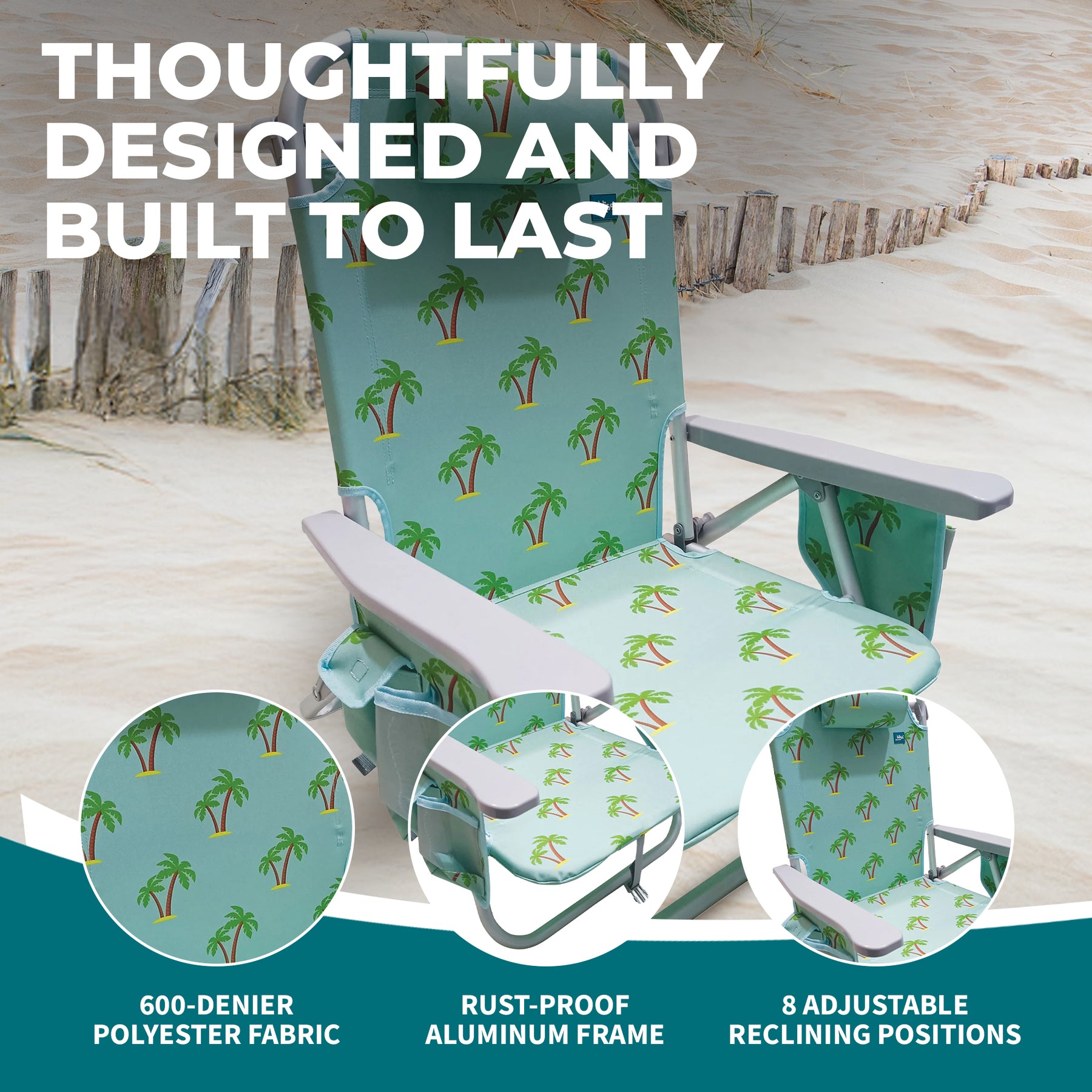 • Backpack beach chair adjusts to 8 reclining positions, including a fully reclined option for maximum comfort