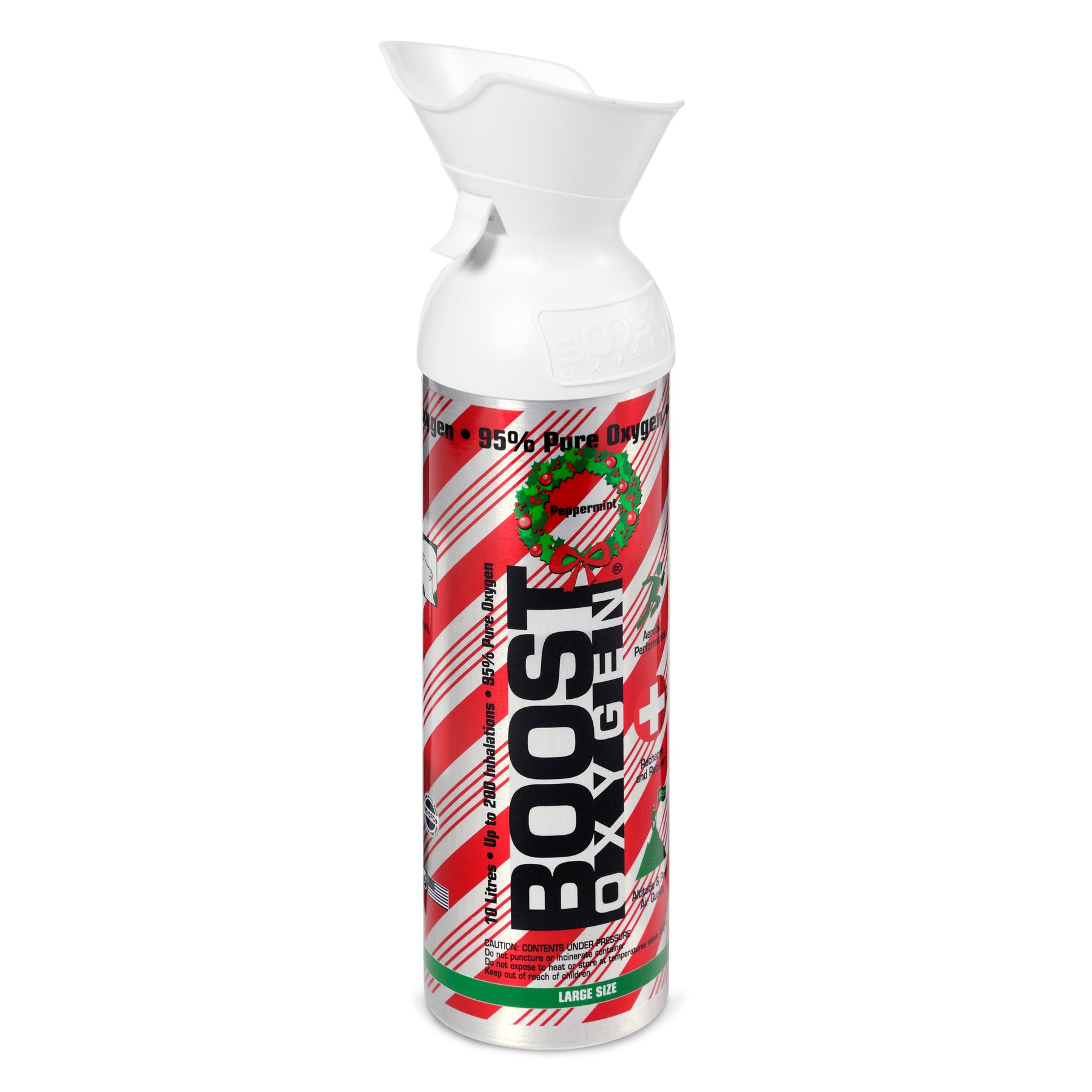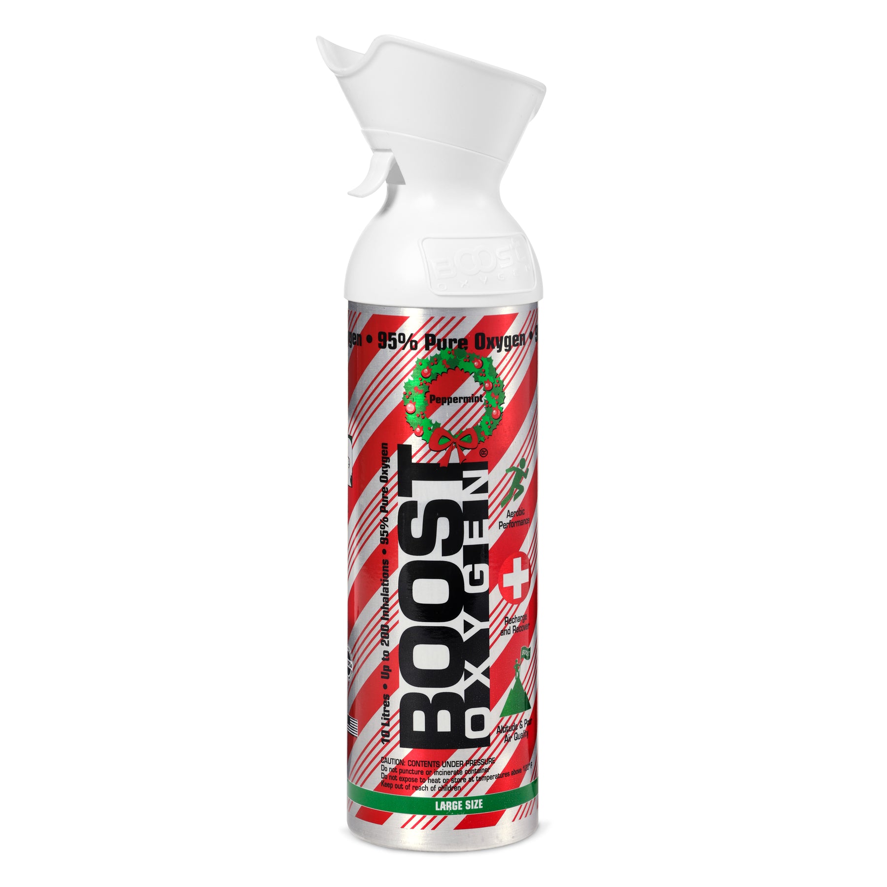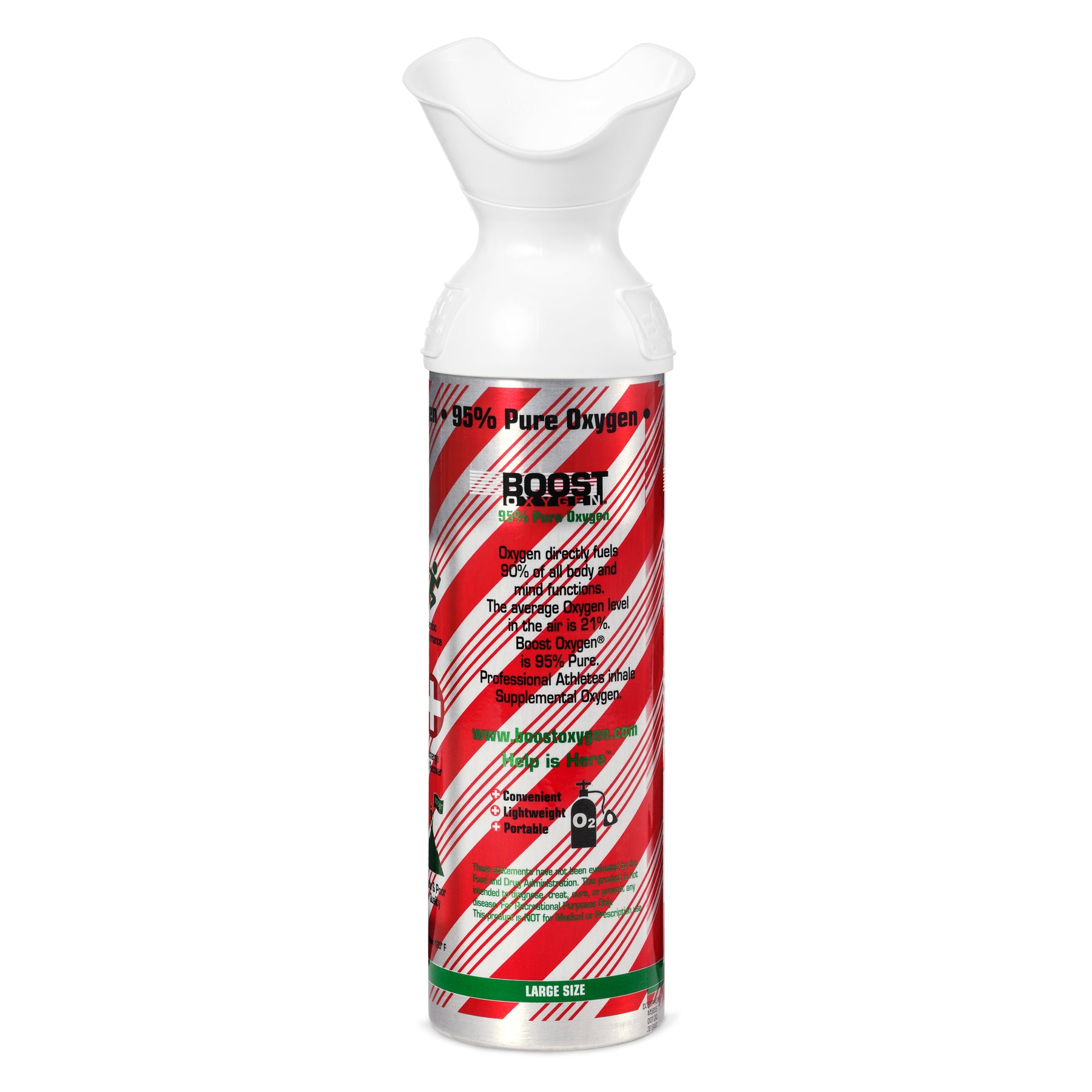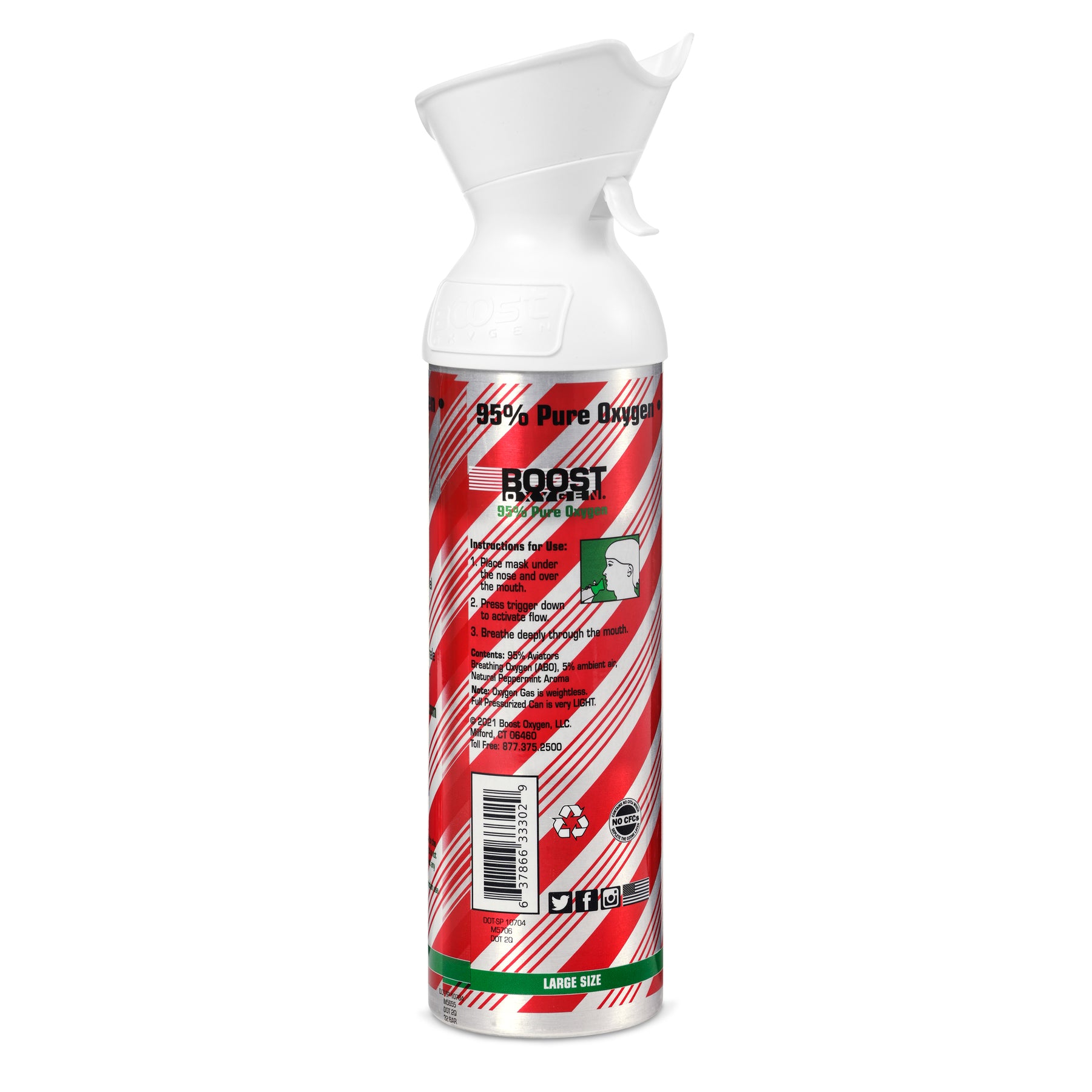 Boost Oxygen provides pure, natural respiratory support that is safe and effective to use. Unlike caffeine, sugar, and other stimulants that can harm the body with extended use, Boost Oxygen offers supplemental oxygen in a non-prescription form to help every cell in your body. The compact 10-liter size makes these limited edition candy cane canisters great for use on the go and for traveling to areas with a high altitude. This breathing oxygen is all-natural and safe to use for athletes, older folks, or even to help combat jet lag. Supplemental oxygen can even help in workout recovery, as a natural way to get you back to feeling your best.
