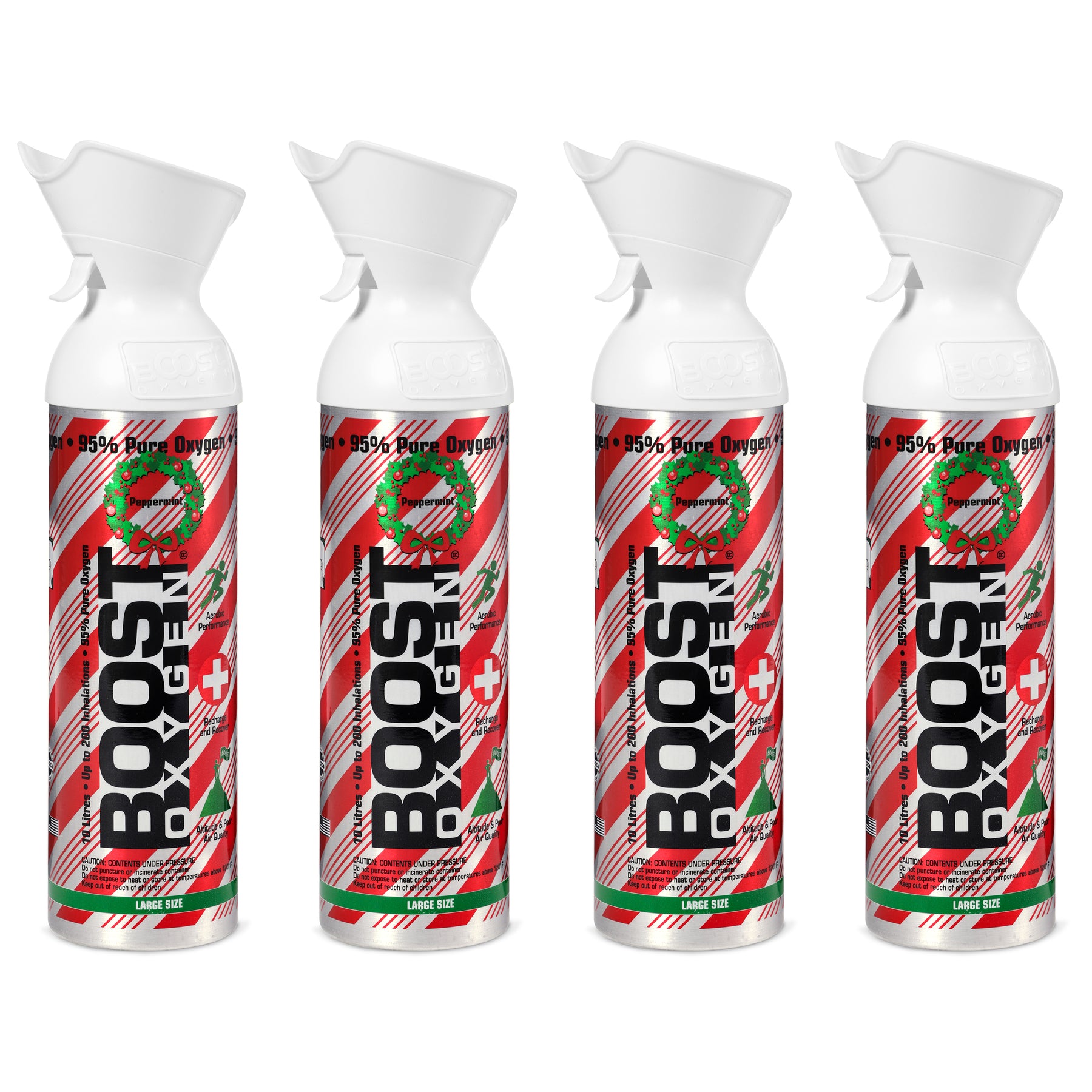 Boost Oxygen 10L Canned Oxygen Holiday Candy Cane Bottle, Peppermint (4 Pack)