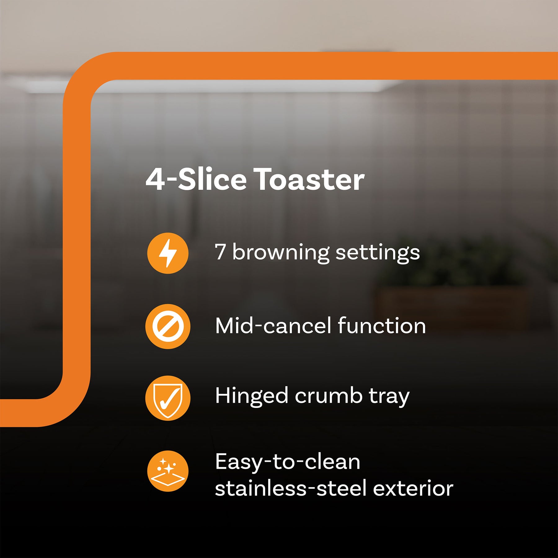 Complete Cuisine 4-Slice Toaster, 1300W Electric Toaster w/4 Slots (Open Box)