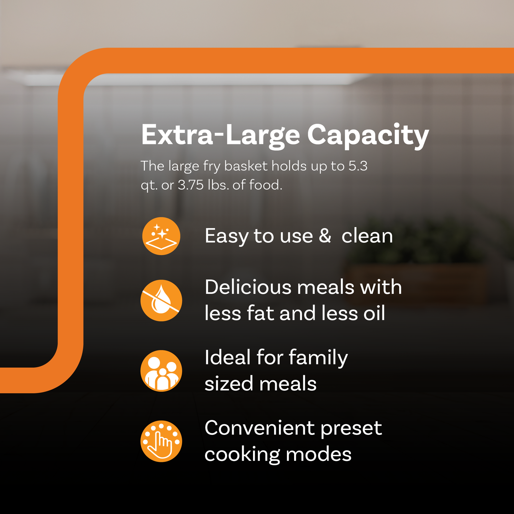 • Has cool-touch handle and Fry Force 360-Degree Technology