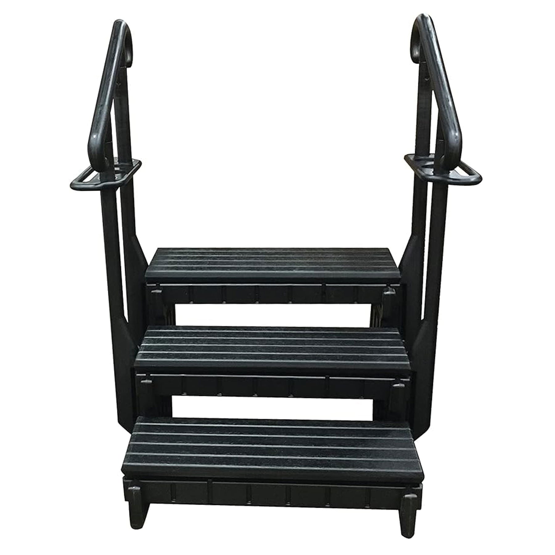 Confer Plastics 36” Signature Spa Step w/Treads & Curved Handrails, Black (Used)