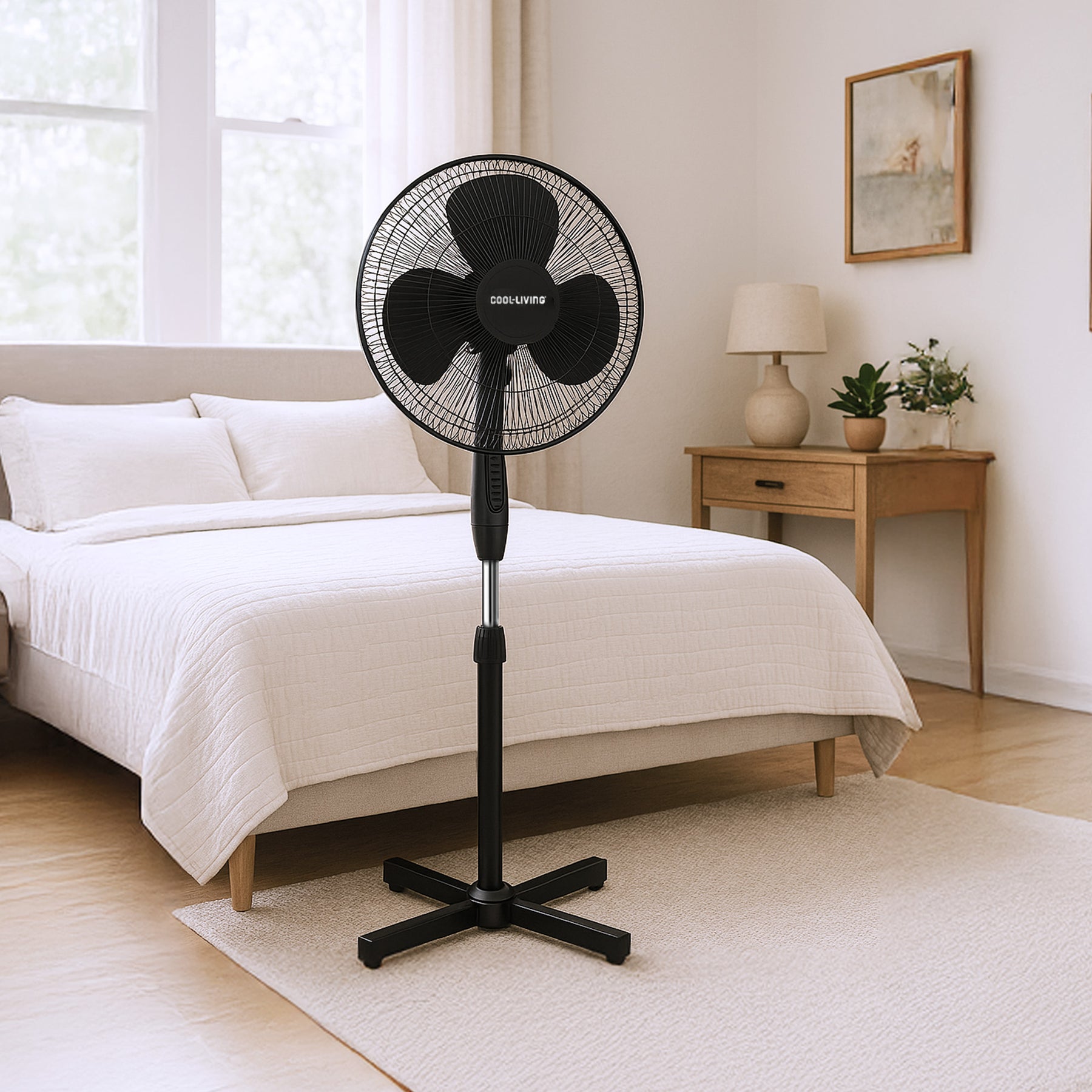 The Cool-Living 16-inch Electric Oscillating Pedestal Fan is the perfect solution for customizable cooling in any room. With three-speed options—low, medium, and high—you can easily adjust the airflow to match your comfort level. Whether you prefer a soft, gentle breeze or a powerful gust of air, this fan provides the flexibility to keep you cool and refreshed throughout the day.