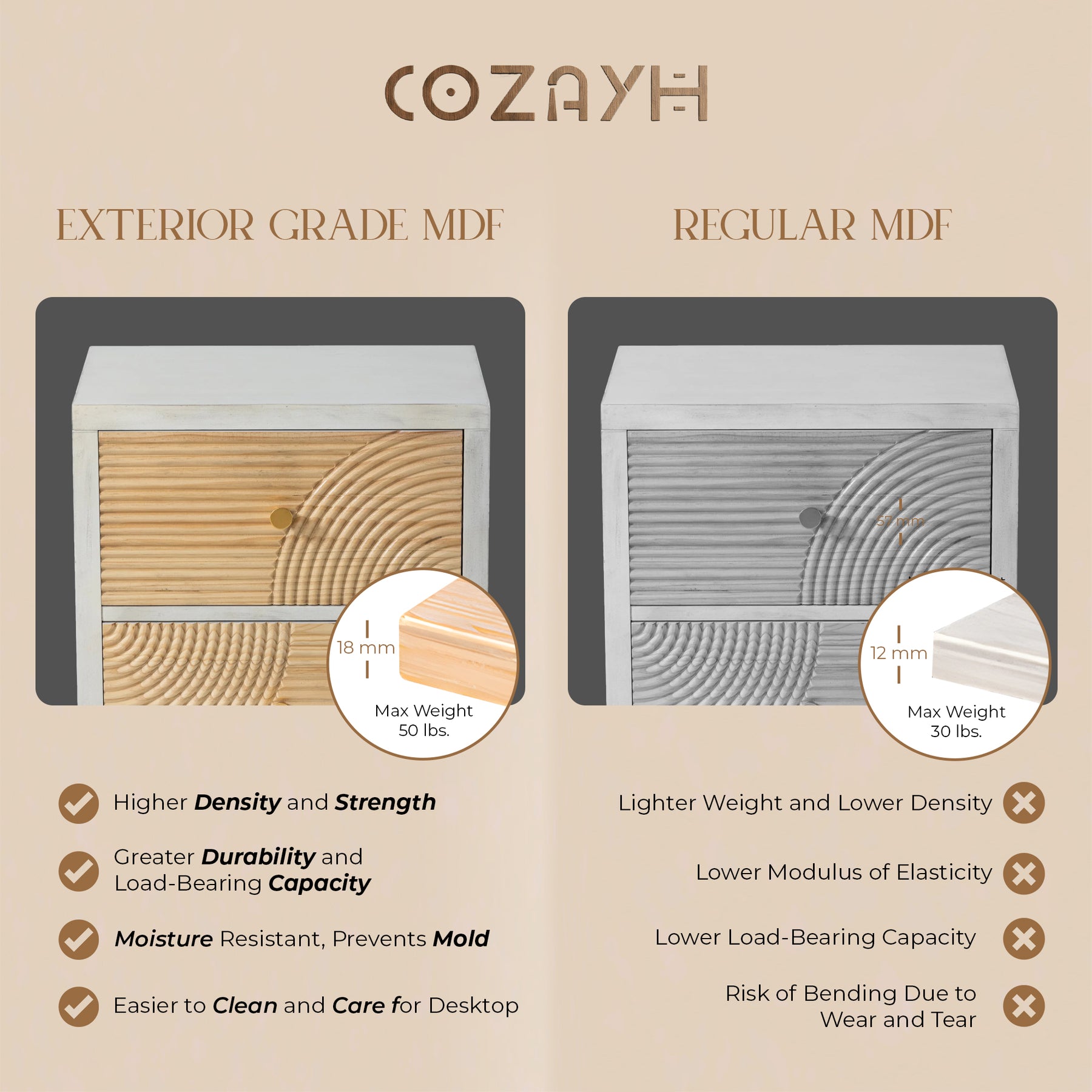 COZAYH 2-Drawer Farmhouse Nightstand w/Rustic Wood Ring Pattern (Open Box)