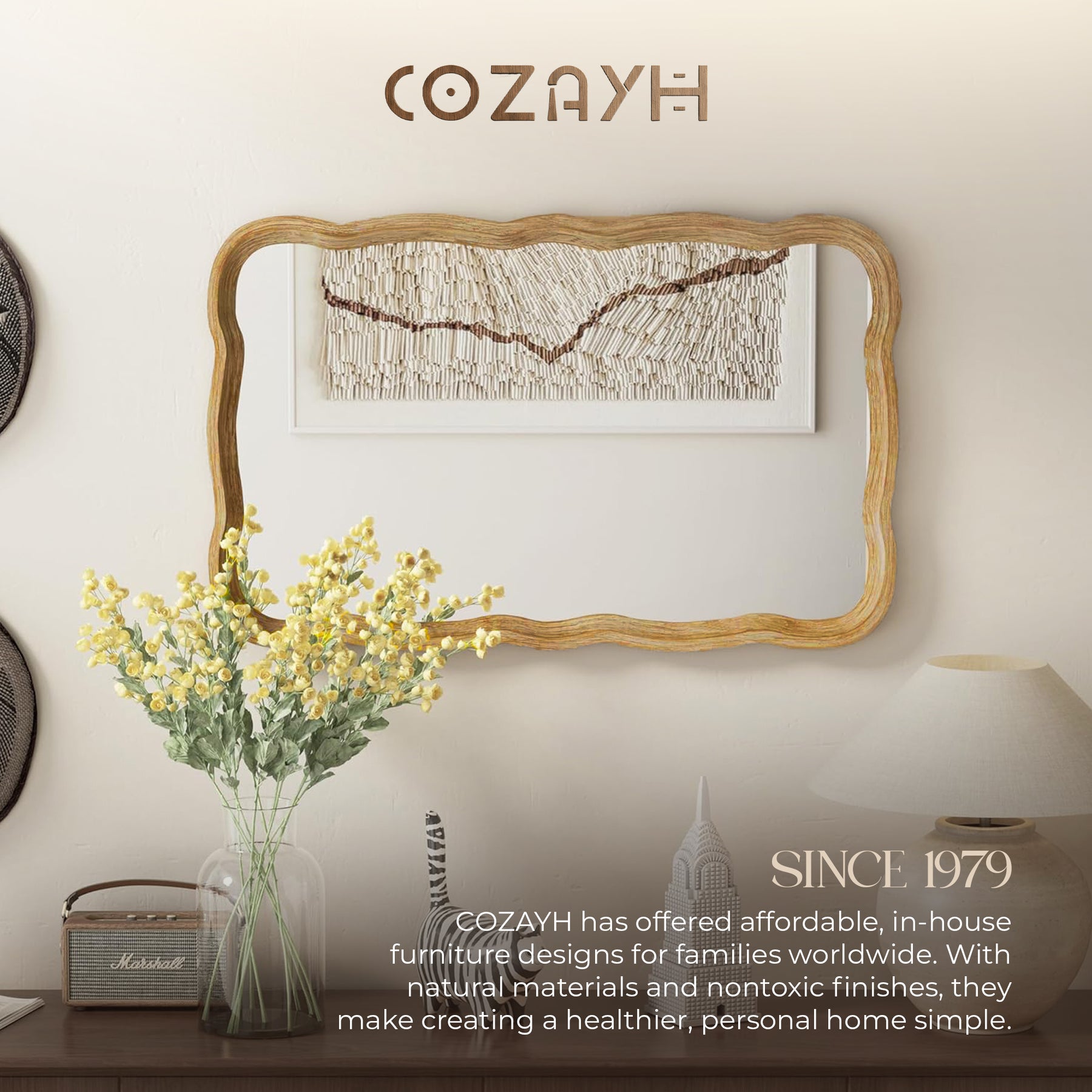 COZAYH Curved Wood Frame Accent Mirror, Modern Farmhouse Wall Decor (Open Box)