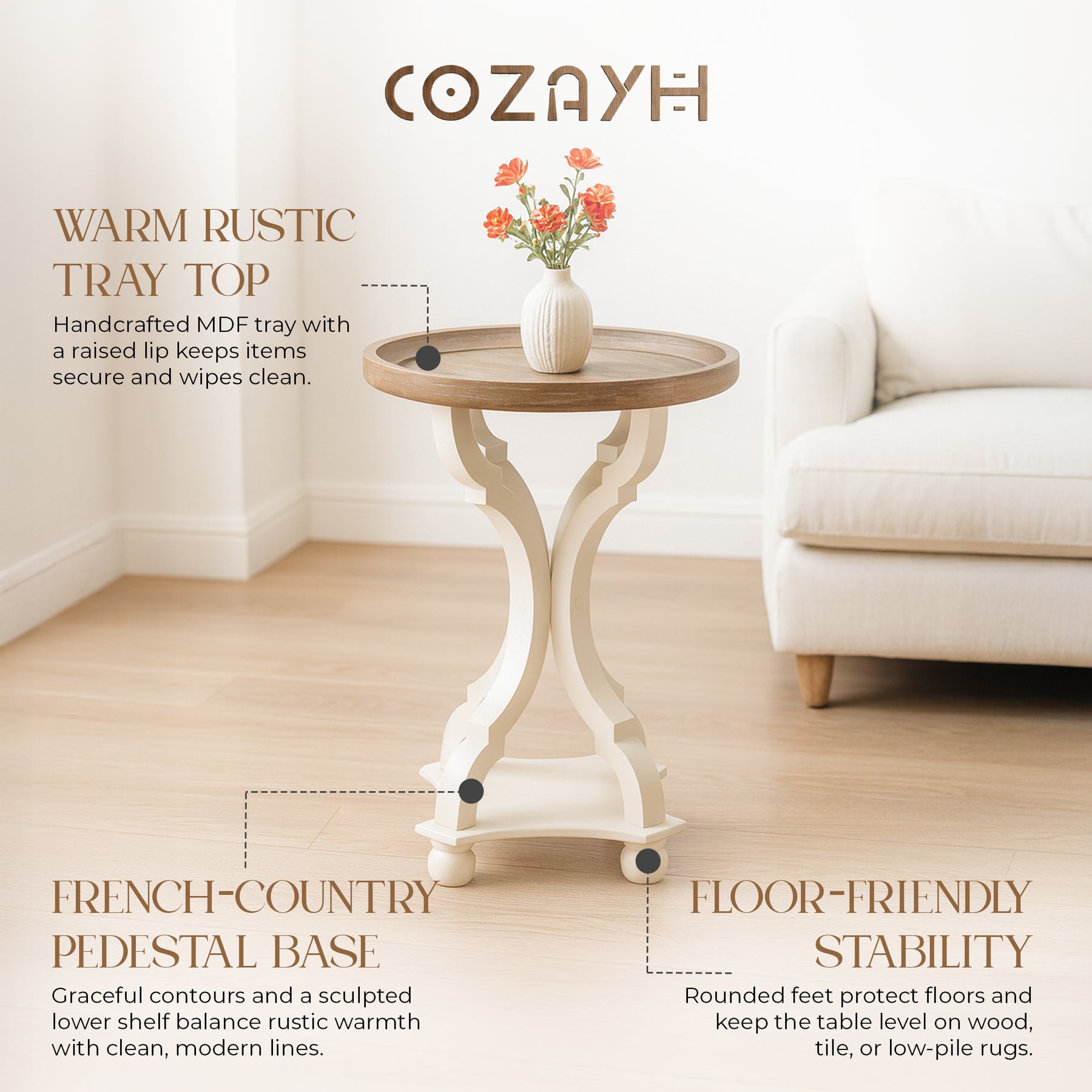 COZAYH Round Rustic Wood End Table Accent Nightstand SideTable Bedroom(Open Box)
