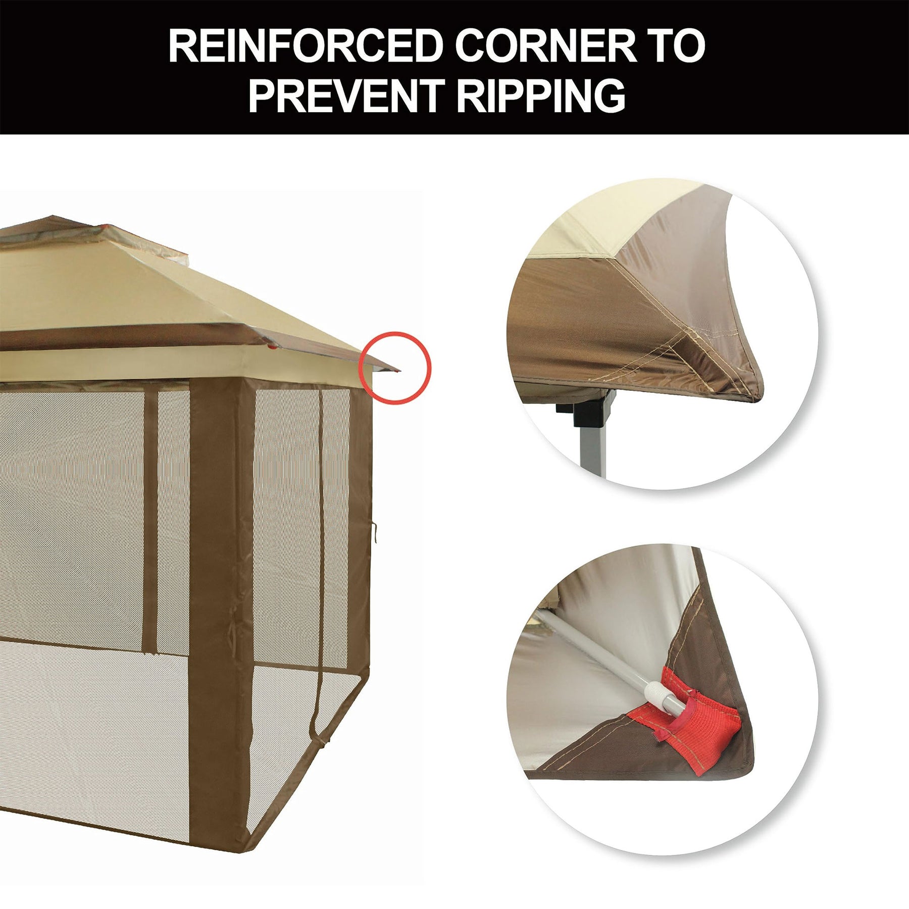 CROWN SHADES 11x11' PopUp Gazebo Shelter w/Mosquito Net Walls Beige/Coffee(Used)