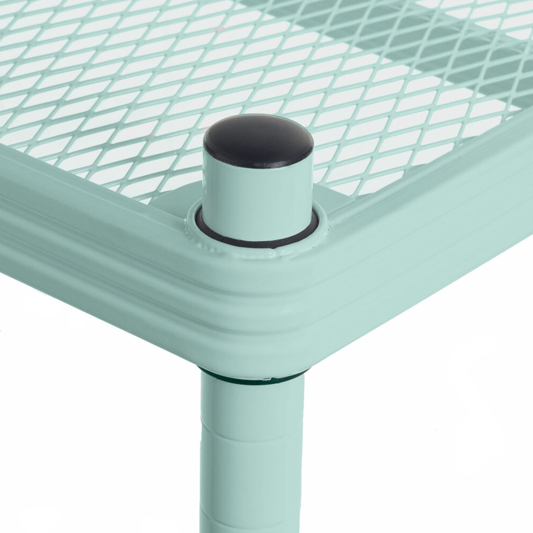 • Heavy-duty stainless steel metal mesh design; Each shelf from this standing shelf unit supports up to 440 pounds