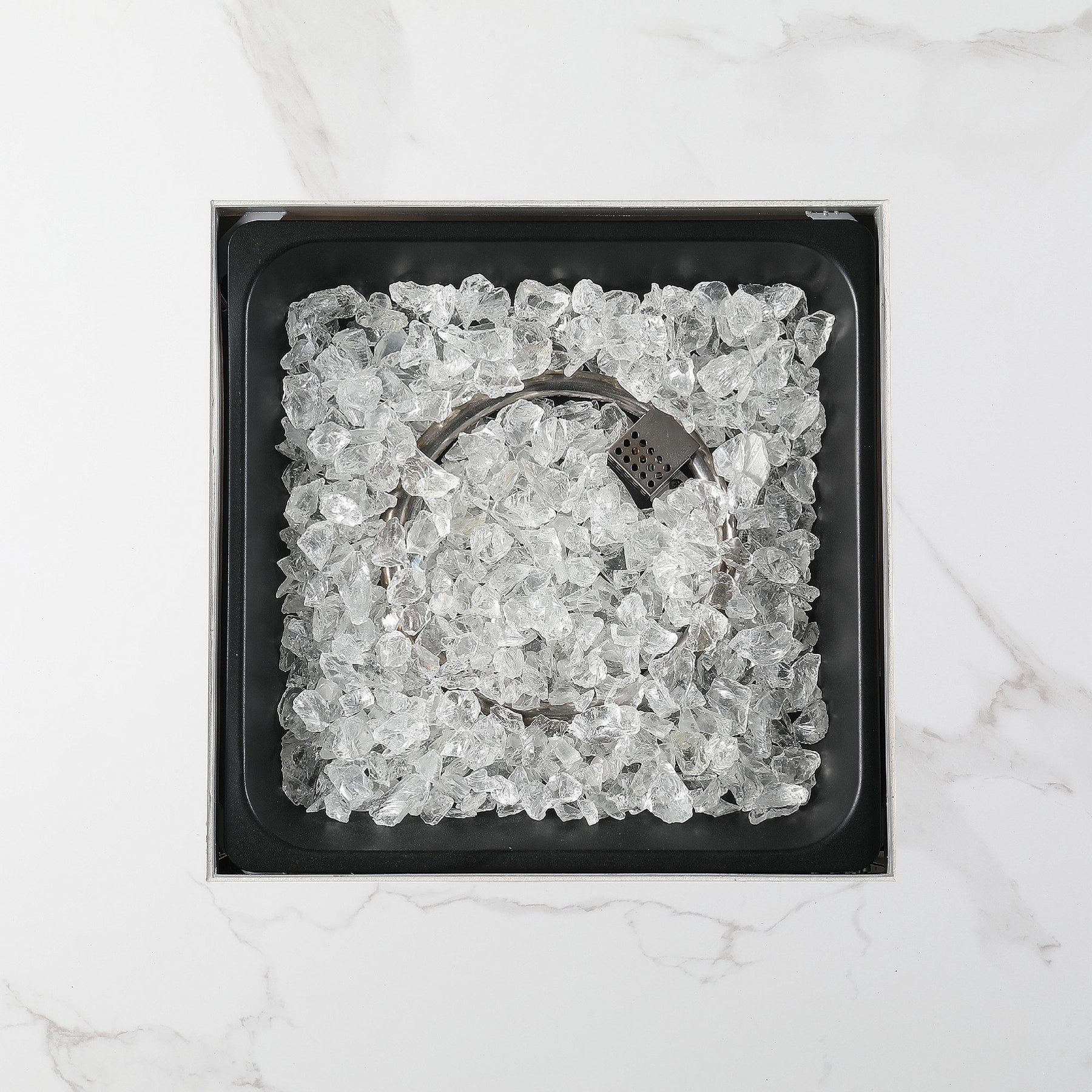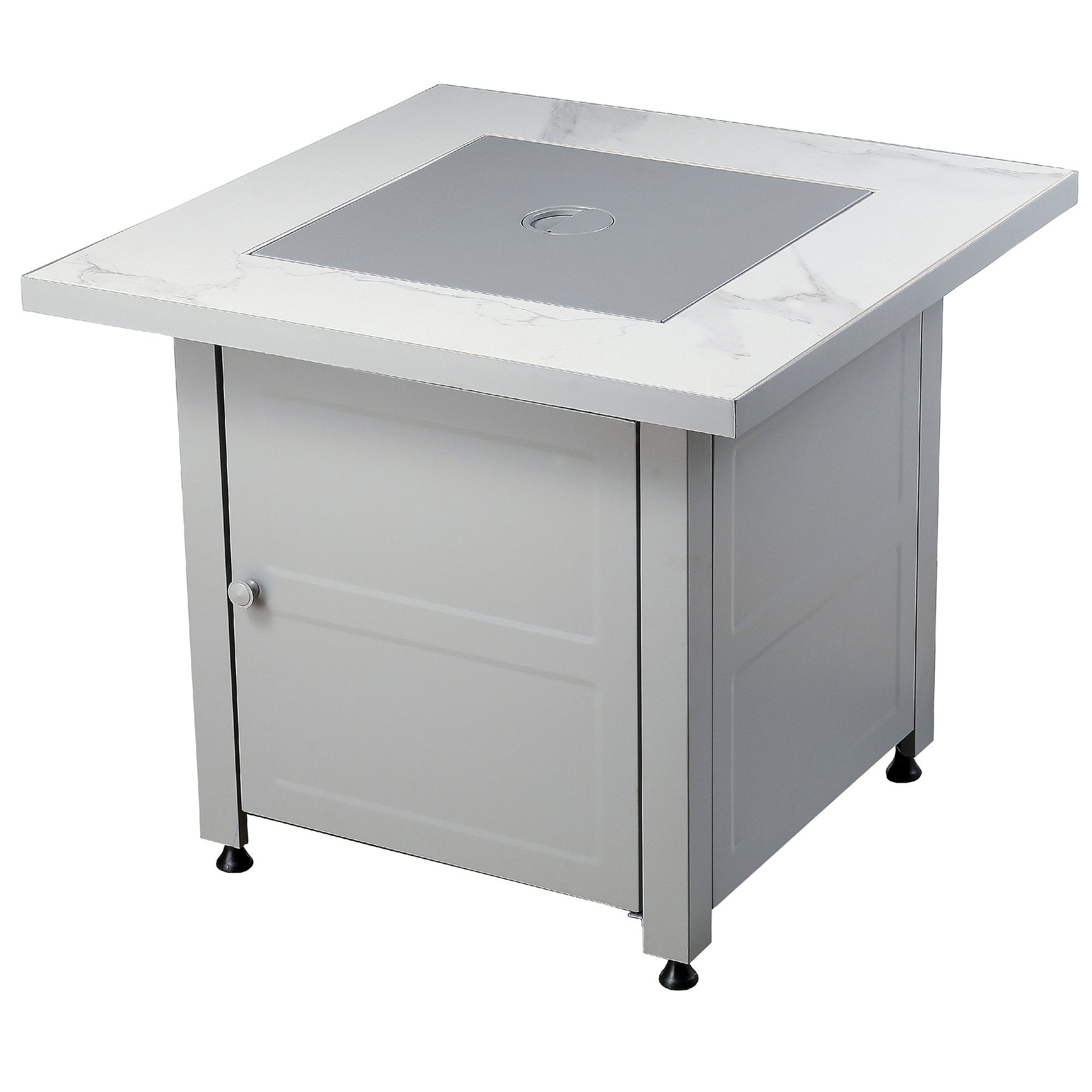 - Elegant stainless-steel square firepit table that runs on an LP gas propane tank (not included)