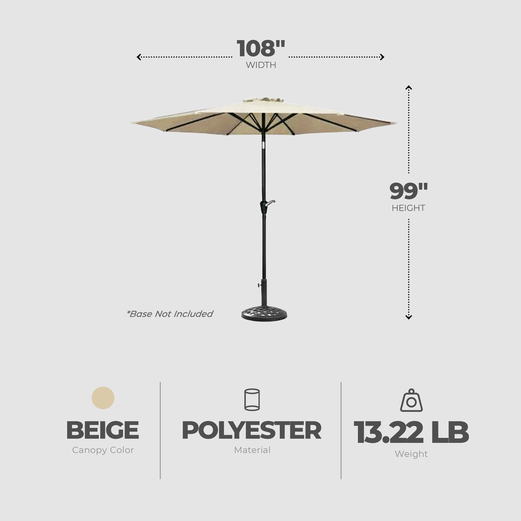 • Polyester fabric boasts a timeless taupe hue that complements any outdoor setting
