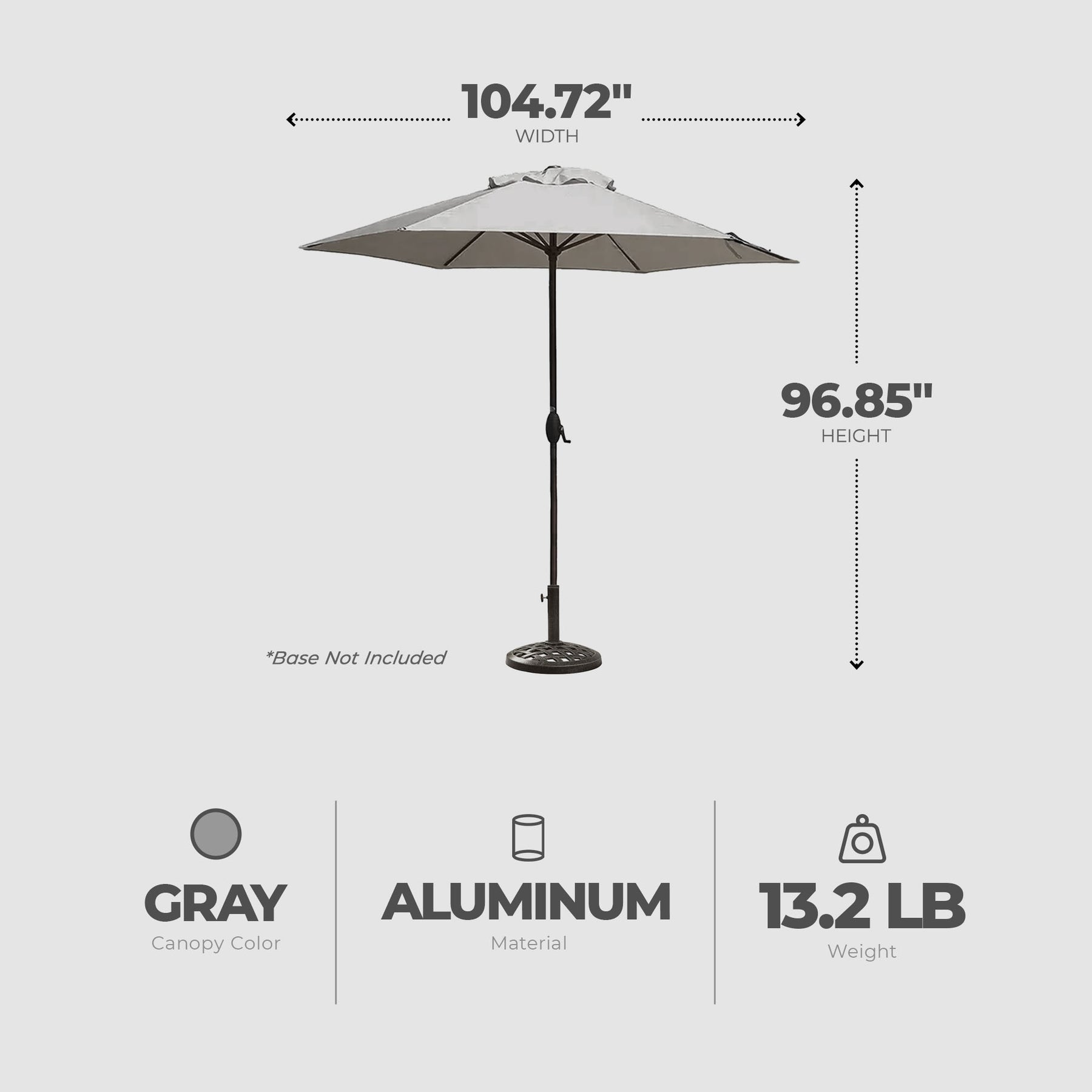 • Aluminum pole finished in a sleek dark gray that effortlessly complements the light gray fabric, creating an ambiance of timeless elegance