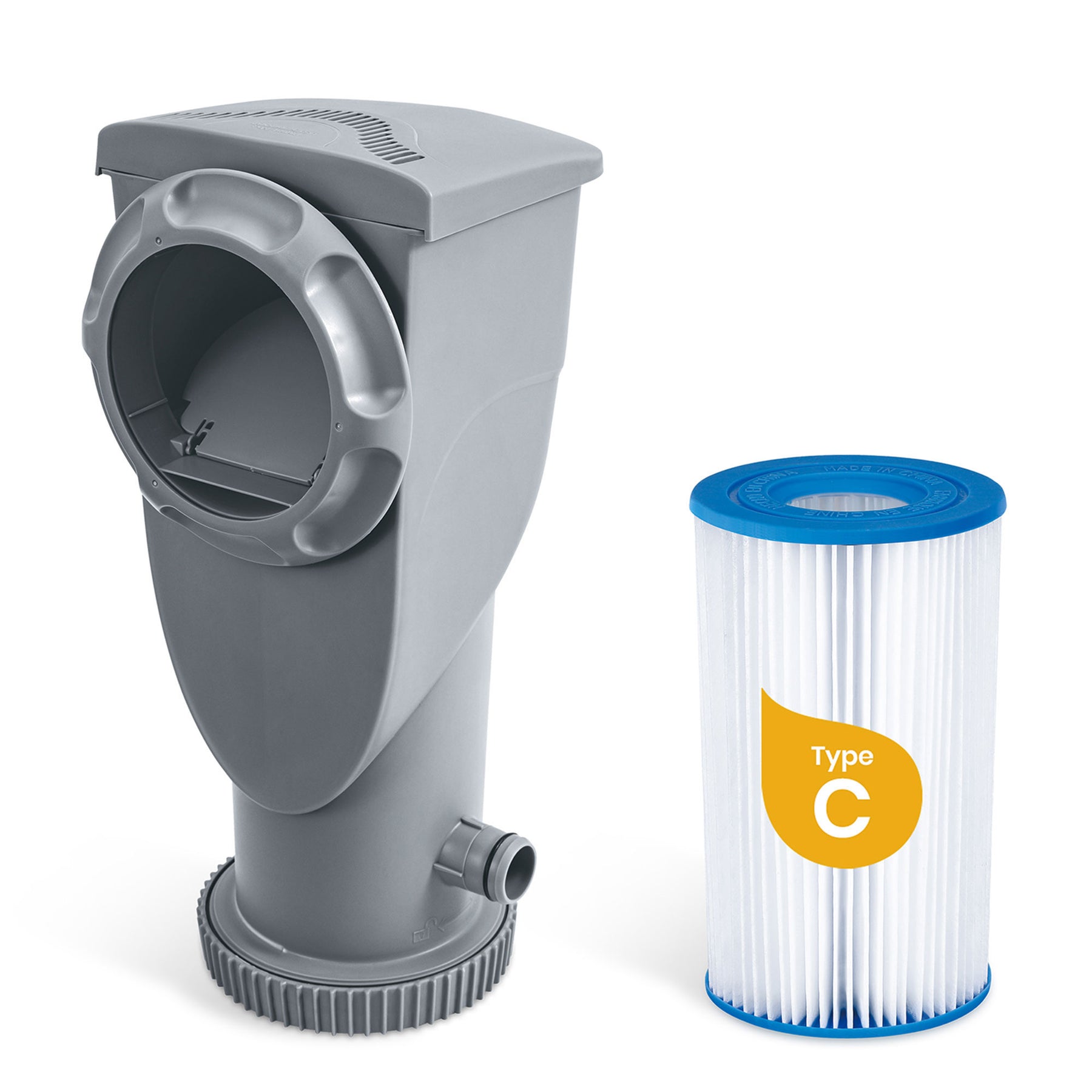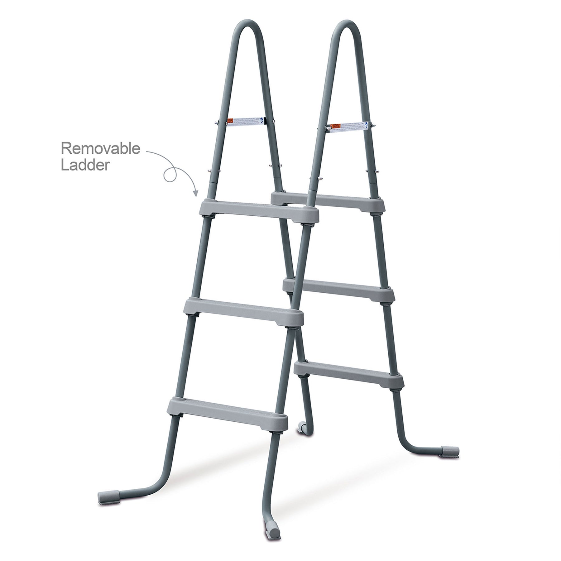 • Includes a 110 to 120-volt SkimmerPlus SKX1000 filter pump with GFCI and type C filter cartridge for easy maintenance, SureStep ladder for a safe entry and exit, a protective pool cover, ground cloth, and a Deluxe Maintenance kit
