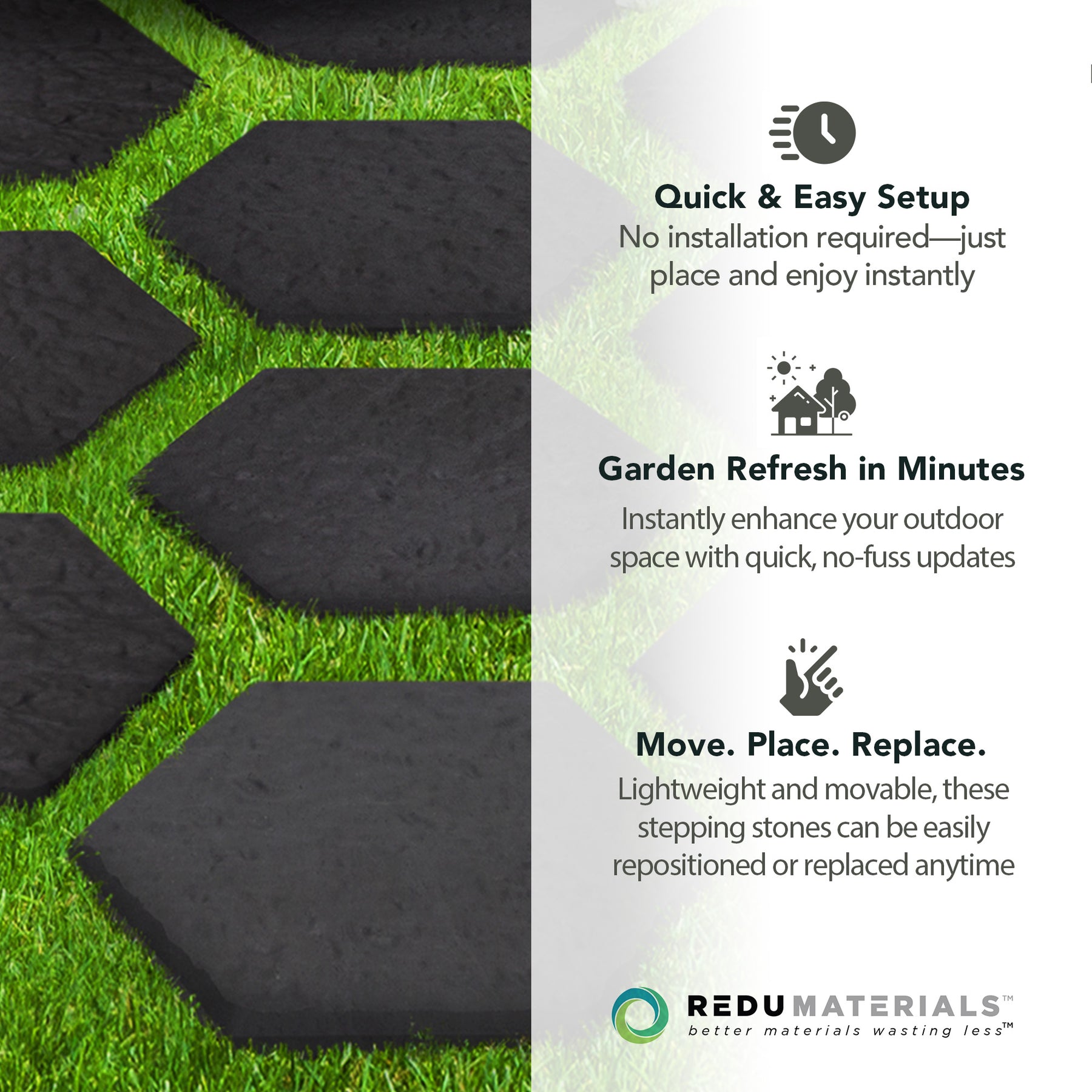 • Outdoor garden Stomp Hex stepping stones kit to enhance yards and outdoor areas by creating an enchanting walkway