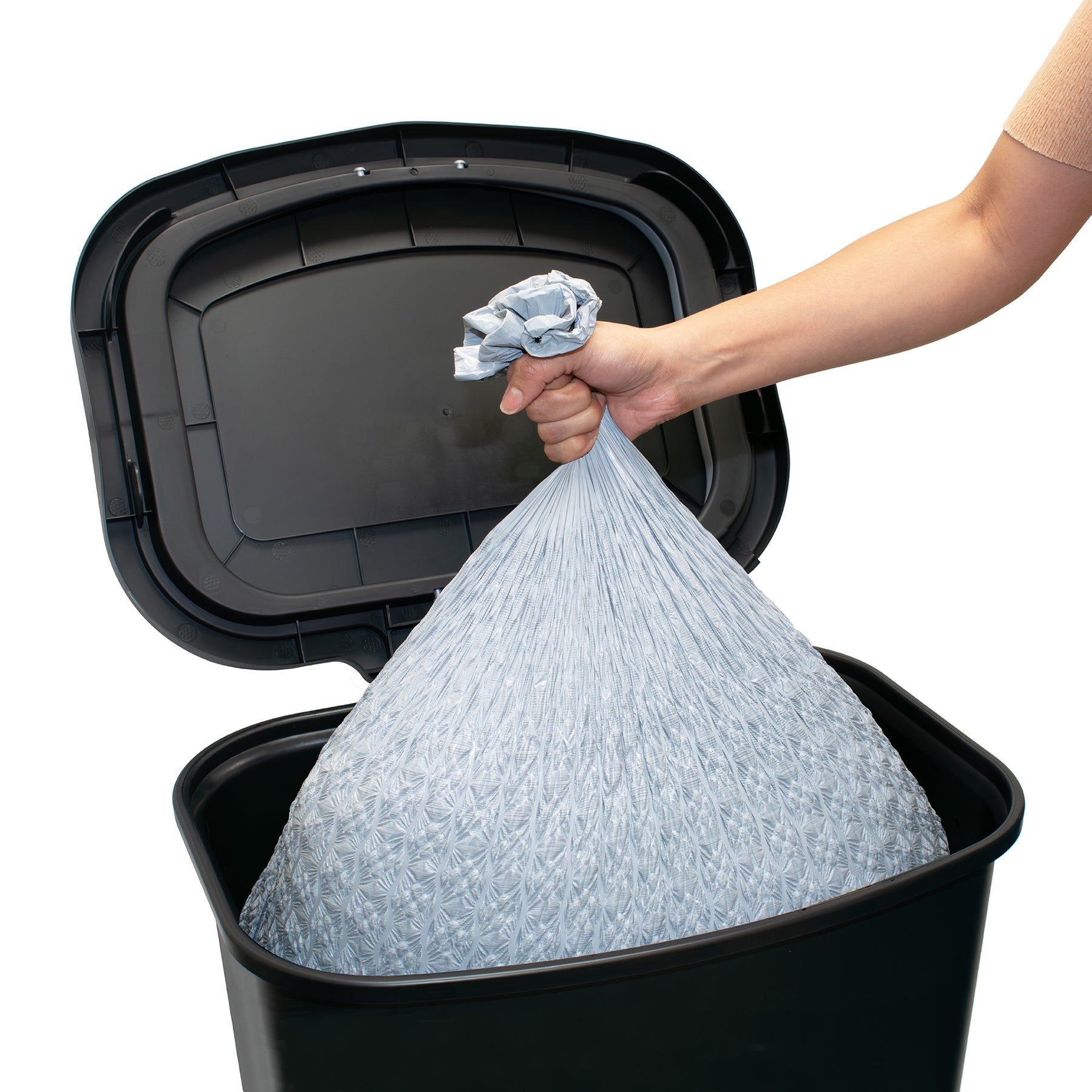 Measuring 20.25"L x 16"W x 26.25"H, this slim-profile trash can fits neatly against walls, cabinets, or in tight spaces without taking up unnecessary room. With a 74-liter capacity, this versatile kitchen trash can from Glad is ideal for kitchens, bathrooms, offices, and commercial settings where a reliable and odor-blocking waste solution is essential.