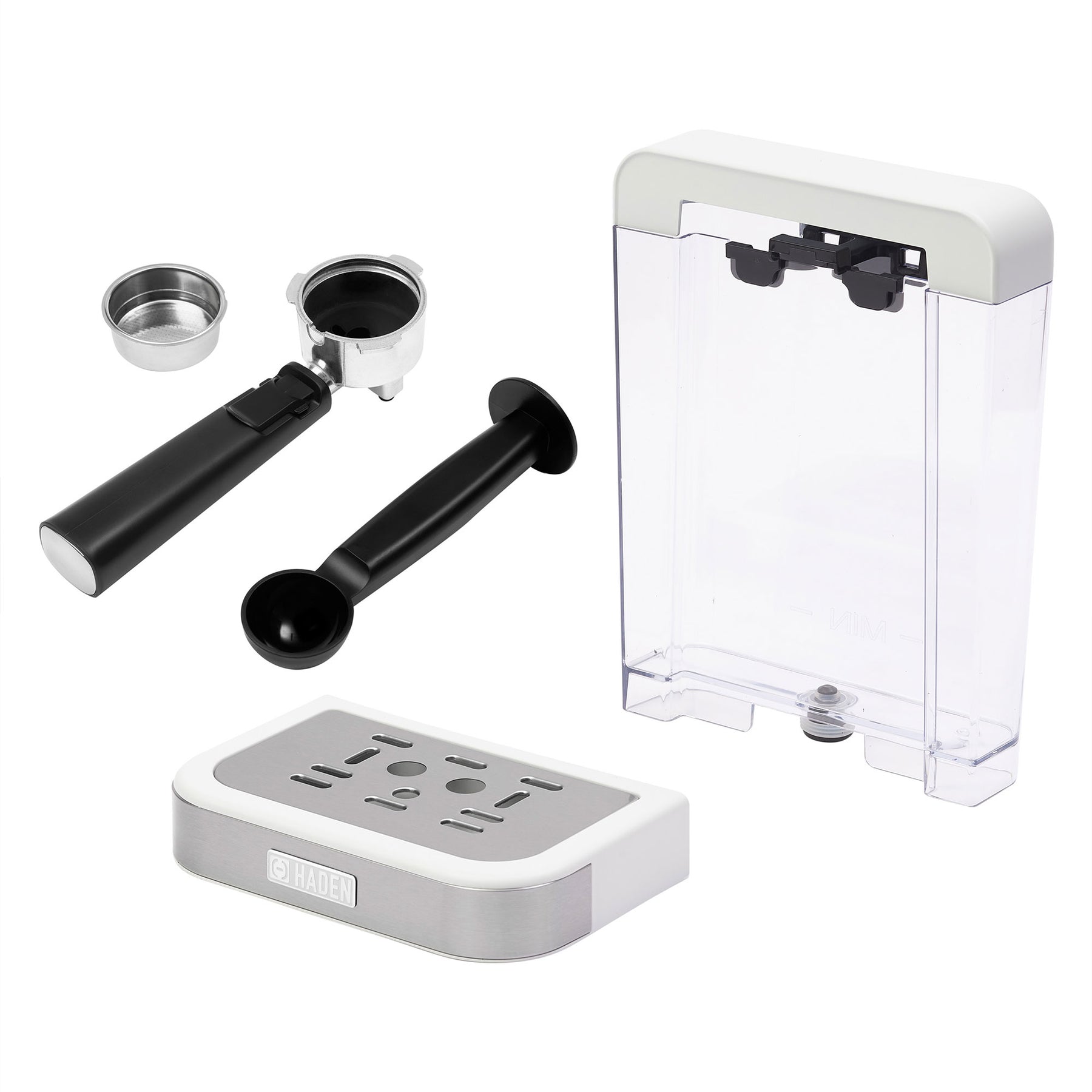 • Perfect for any kitchen, the HADEN coffee machine is easy to use and includes a 1.5-liter detachable water tank and drip tray for ease of maintenance