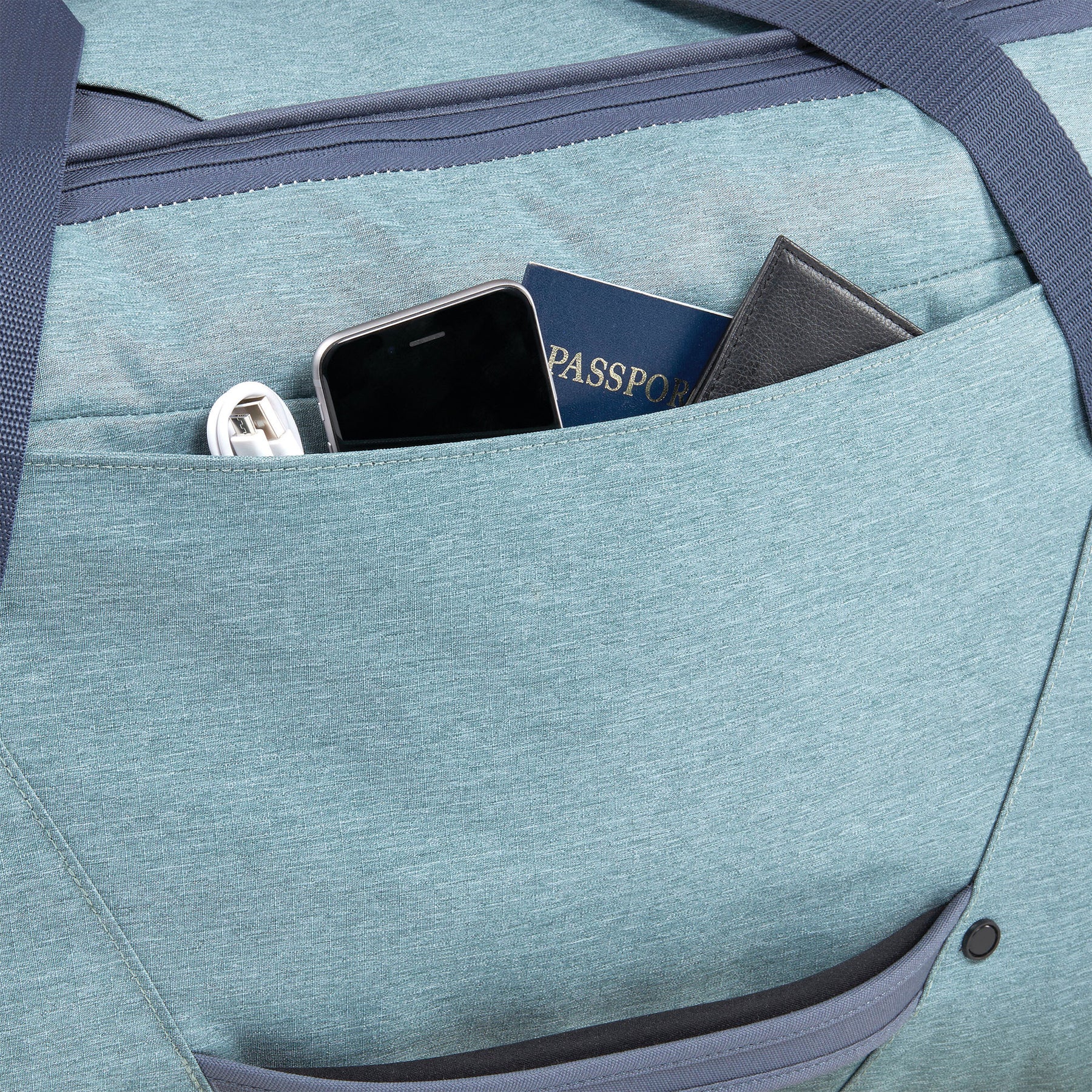 • Front and side stash pockets provide quick access to small accessories like phones, passports, or chargers