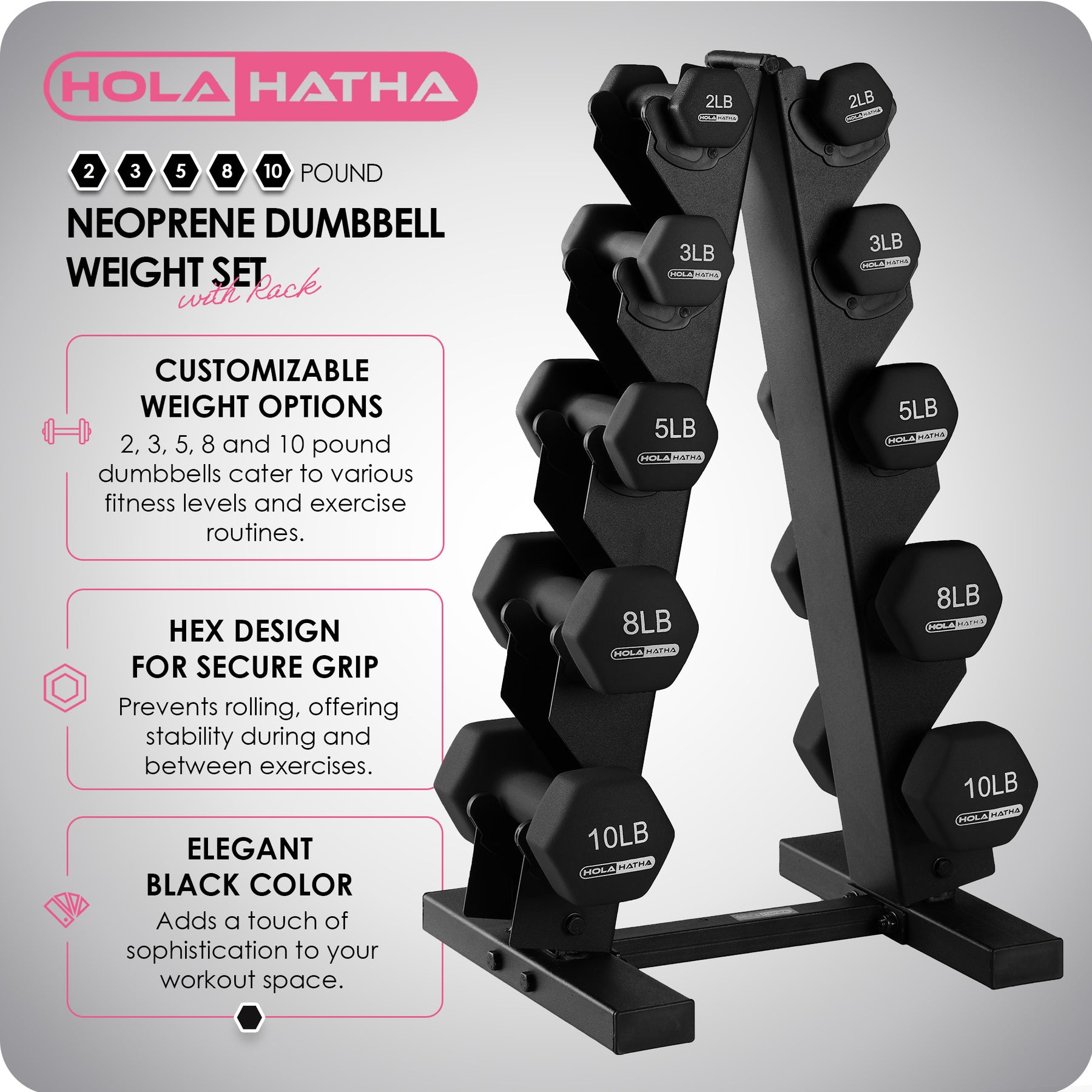 HolaHatha 2, 3, 5, 8 & 10lb Neoprene Dumbbell Set w/Storage Rack (Open Box)