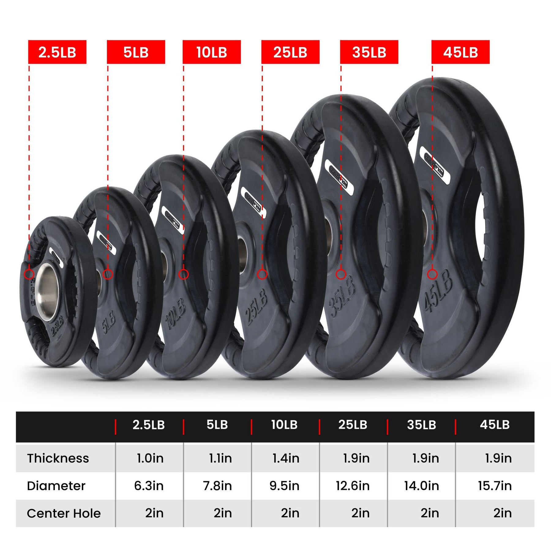 • Features a 1.97-inch center hole for easy loading and unloading that fits onto the barbell perfectly