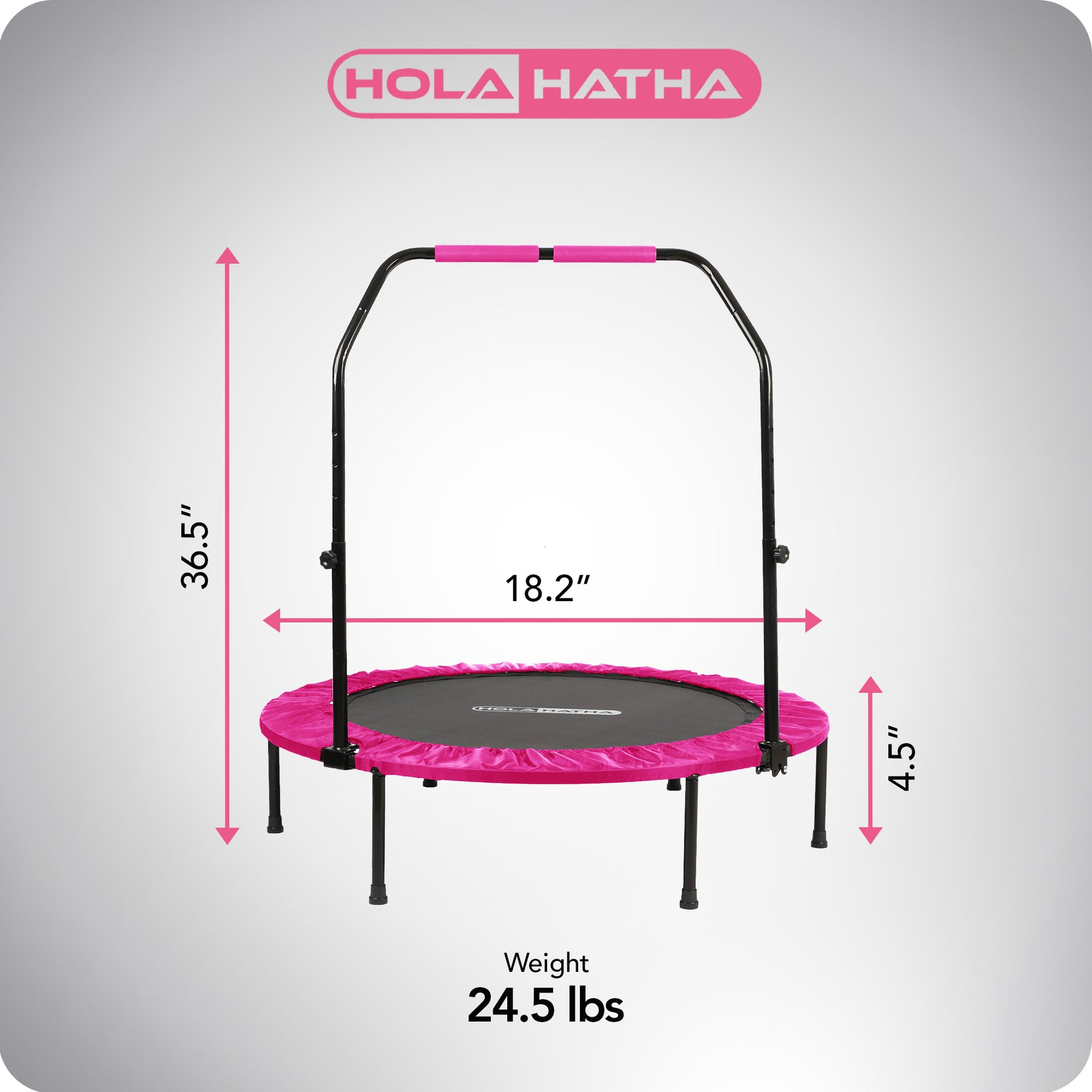 HolaHatha 48" Foldable Mini Trampoline with Adjustable Handle, Pink (Open Box)