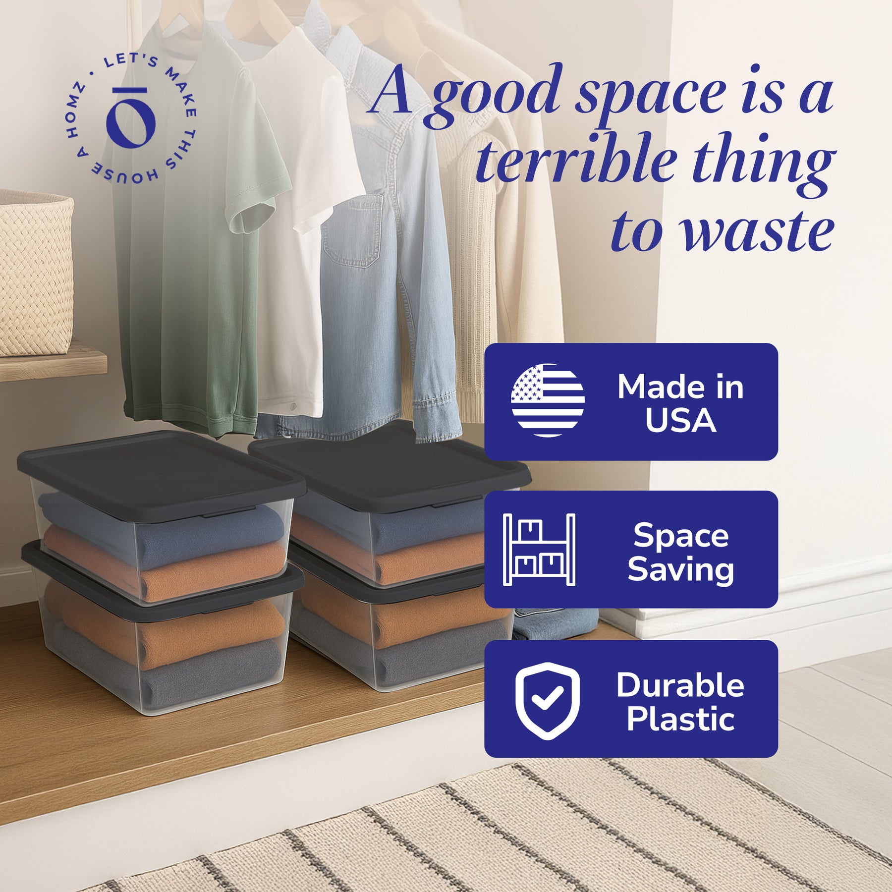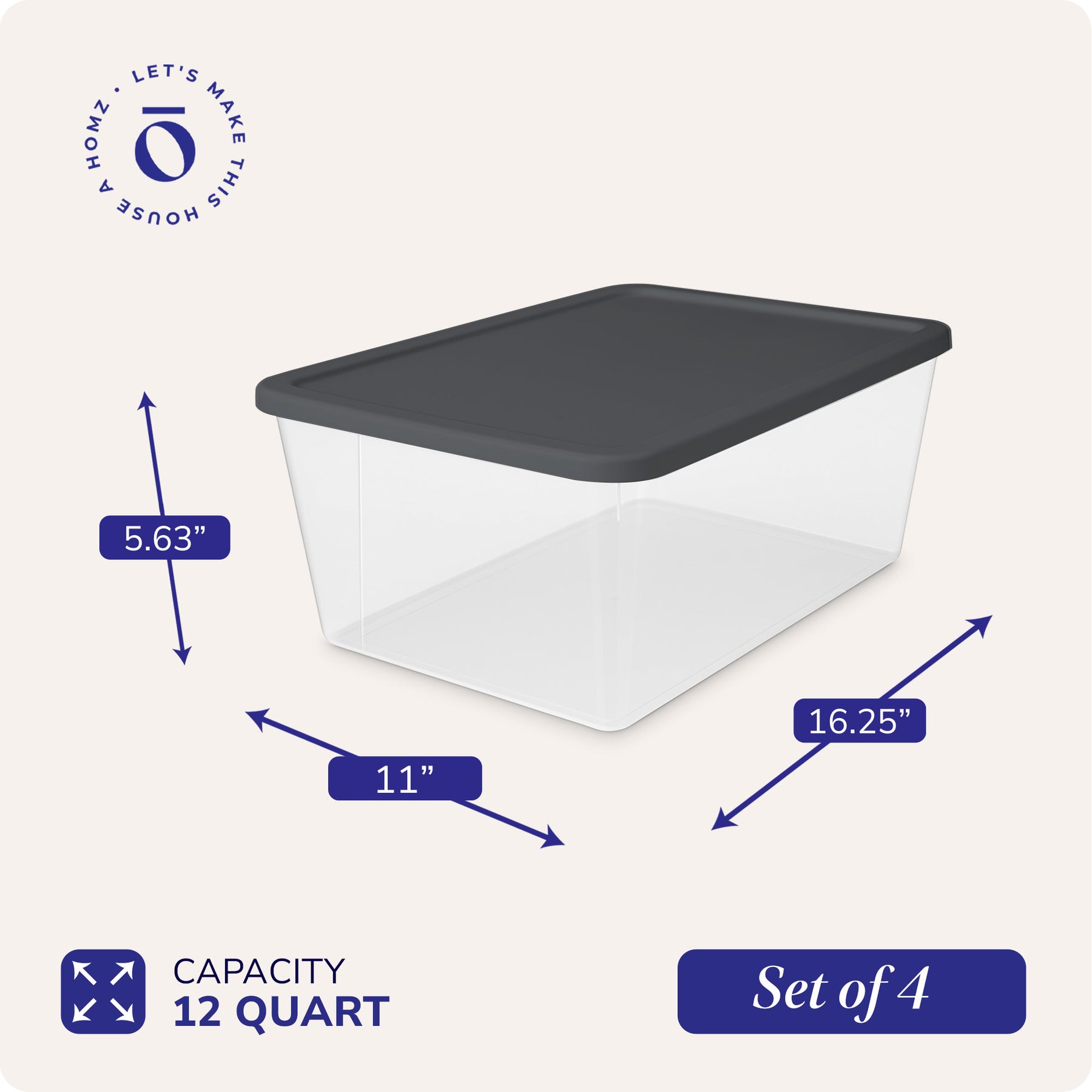 Homz 12 Qt Stackable Plastic Storage Container w/Snaplock, Gray (4pk) (Open Box)