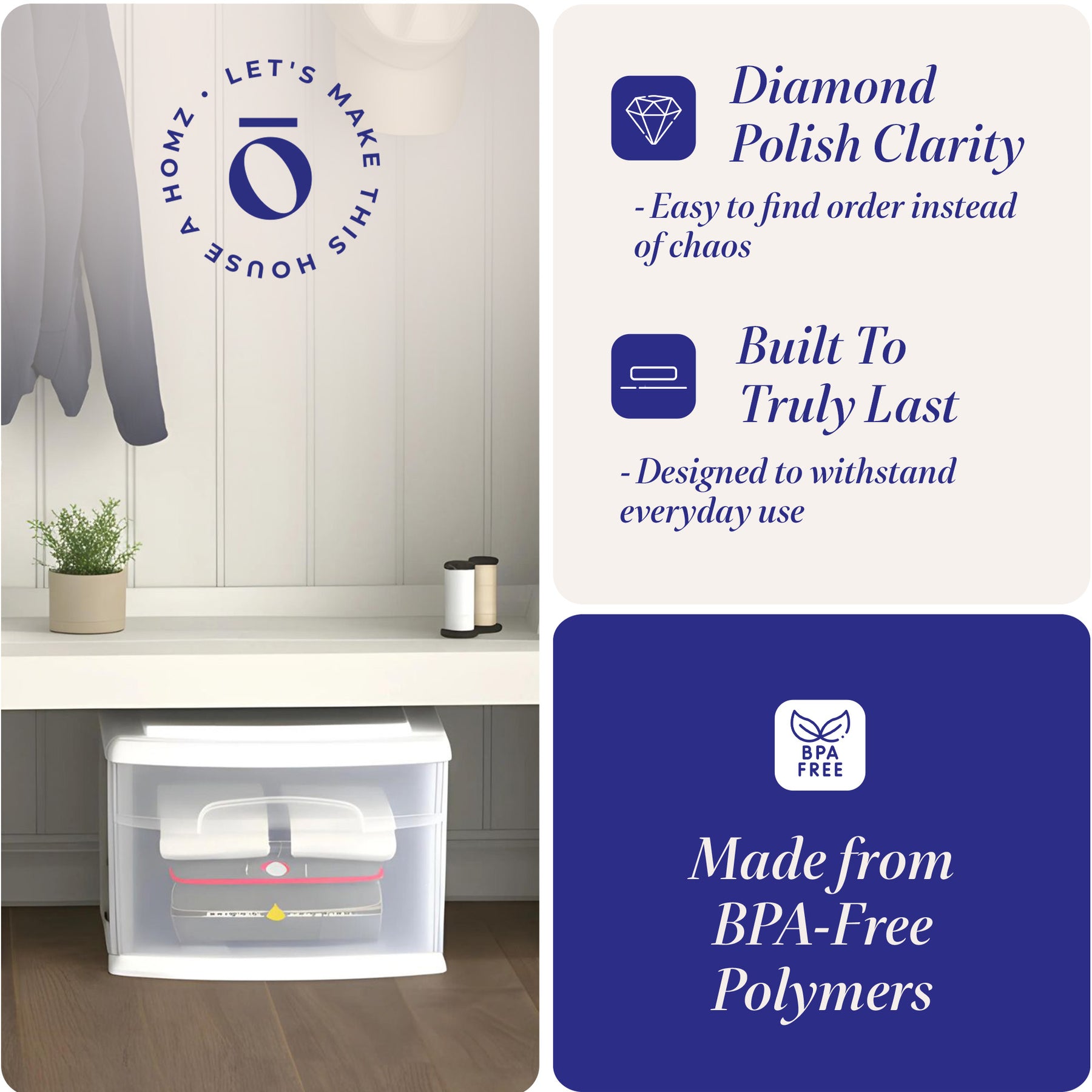 • Color: White Frame, Clear Drawer