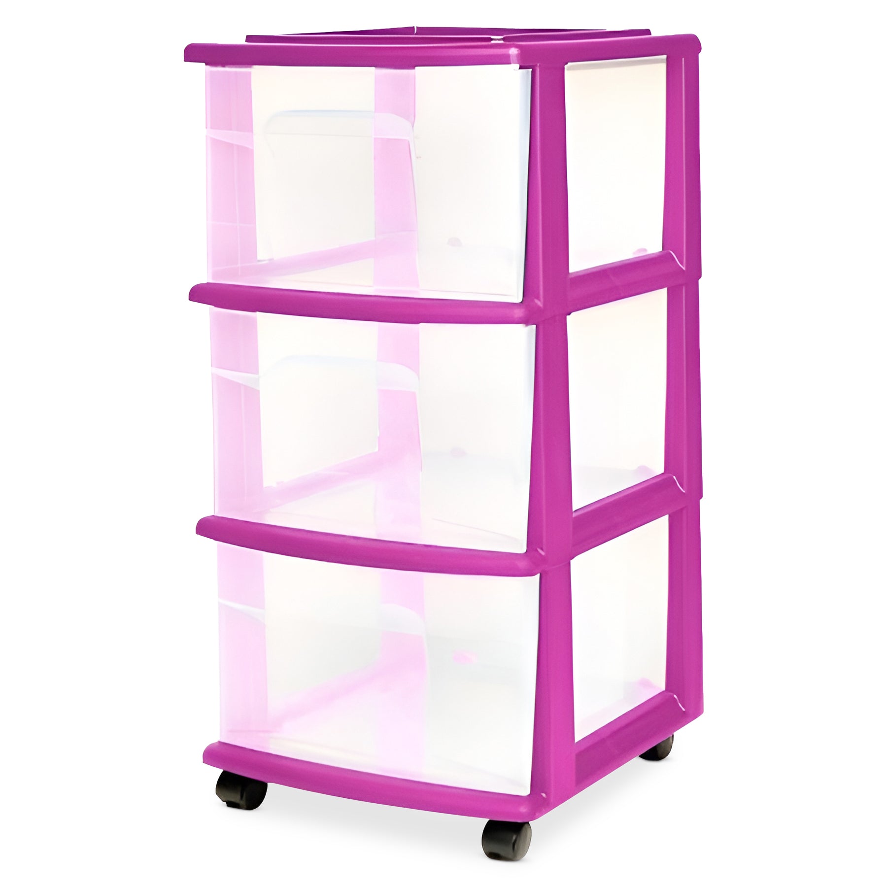 Homz Plastic 3 Drawer Med Storage Tower, Clear Drawers/Purple Frame(Open Box)