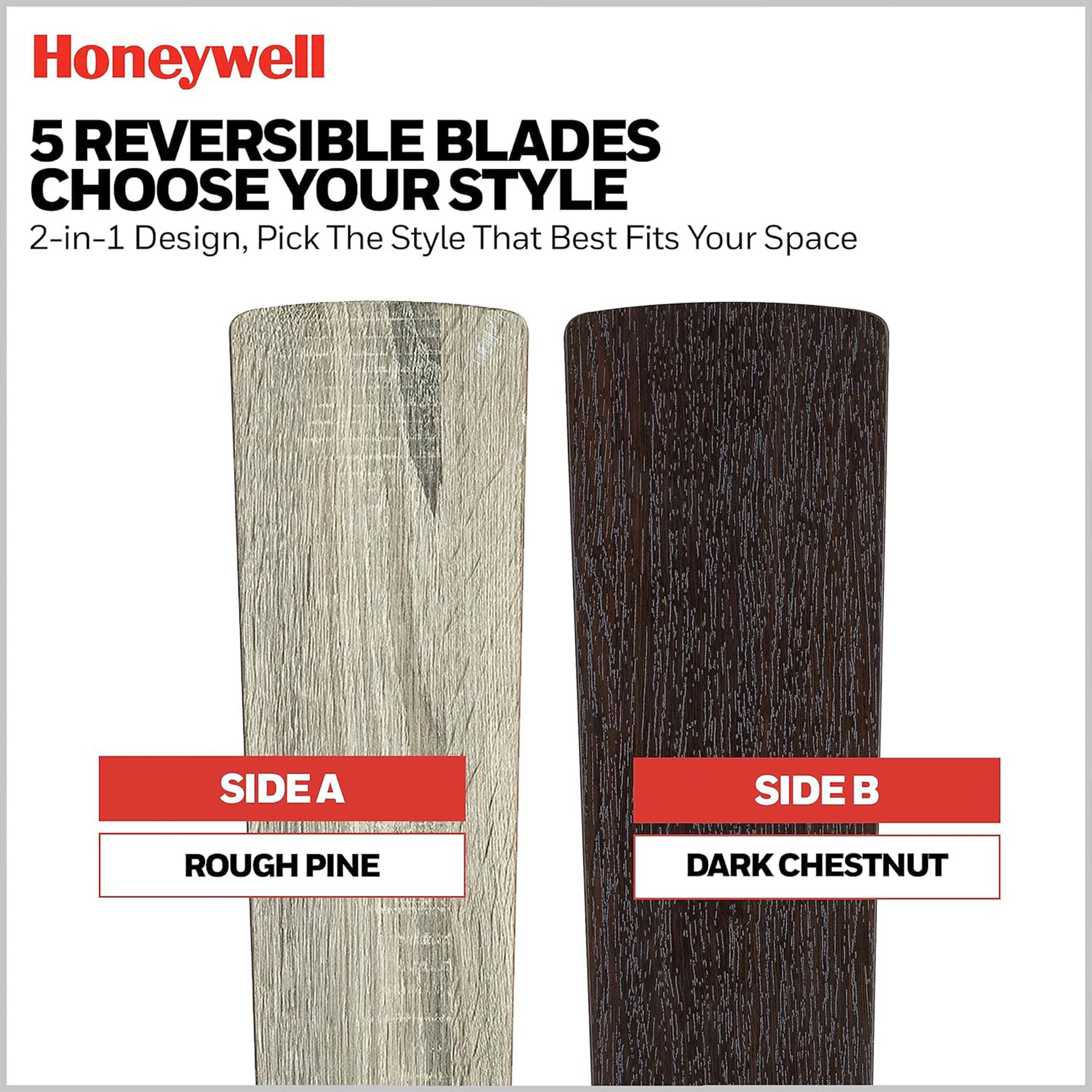 • Blades have modern lines with farmhouse influences with Rough Pine or Dark Chestnut color options to suit your style