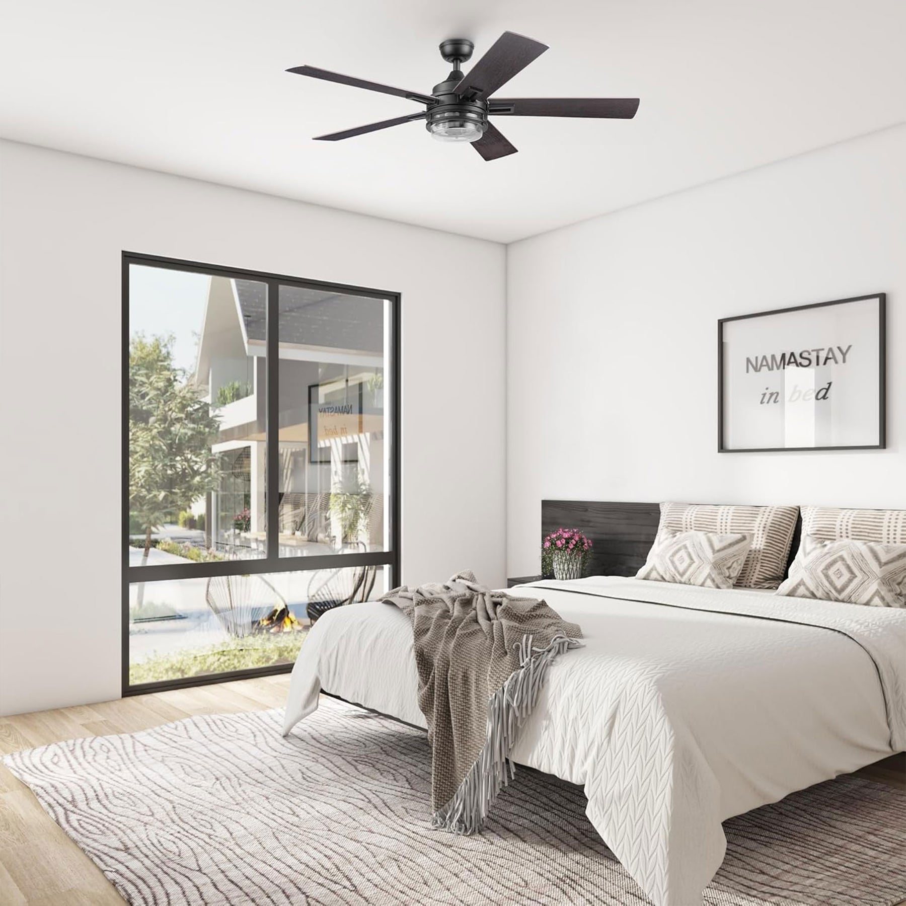 • During warmer months, this ceiling fan optimizes airflow to enhance comfort