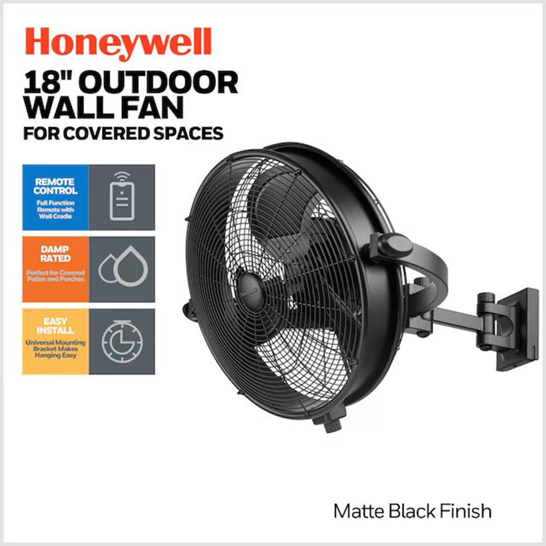 Honeywell Outdoor Wall Fan Remote Quiet 18" XL Mount Adjustable, Blk (Open Box)