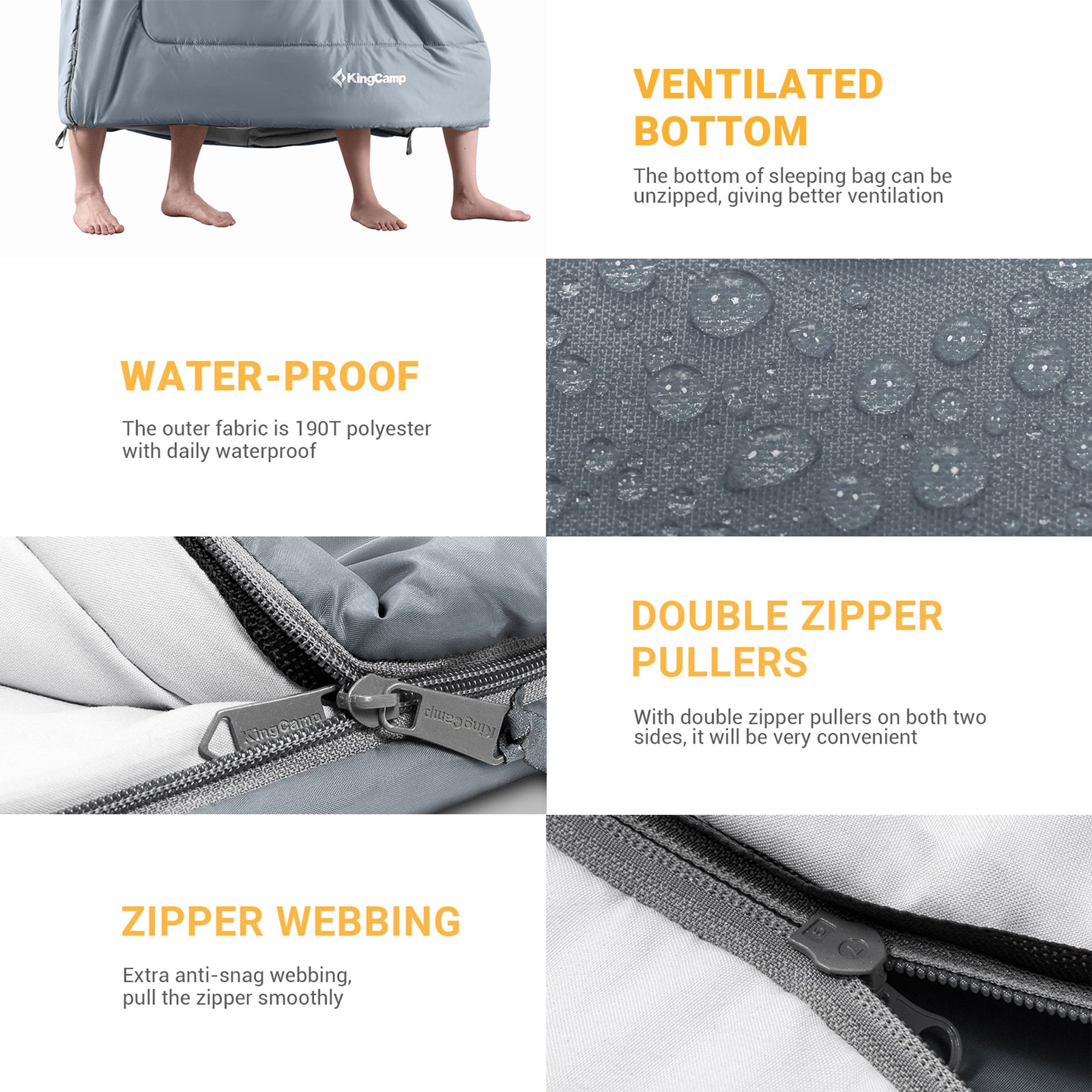 • Double-sided zipper makes it easy to get in and out while also allowing you to adjust the temperature inside