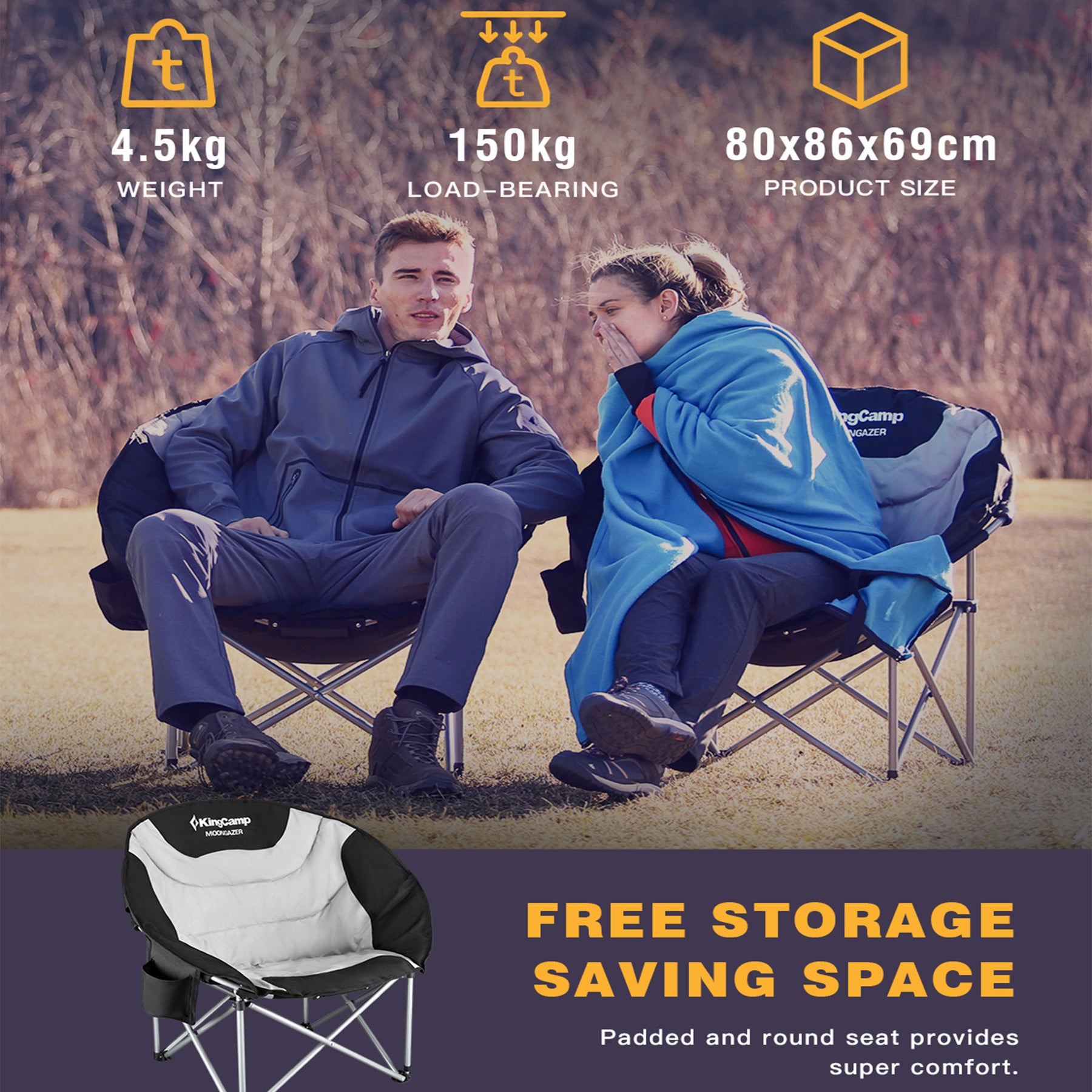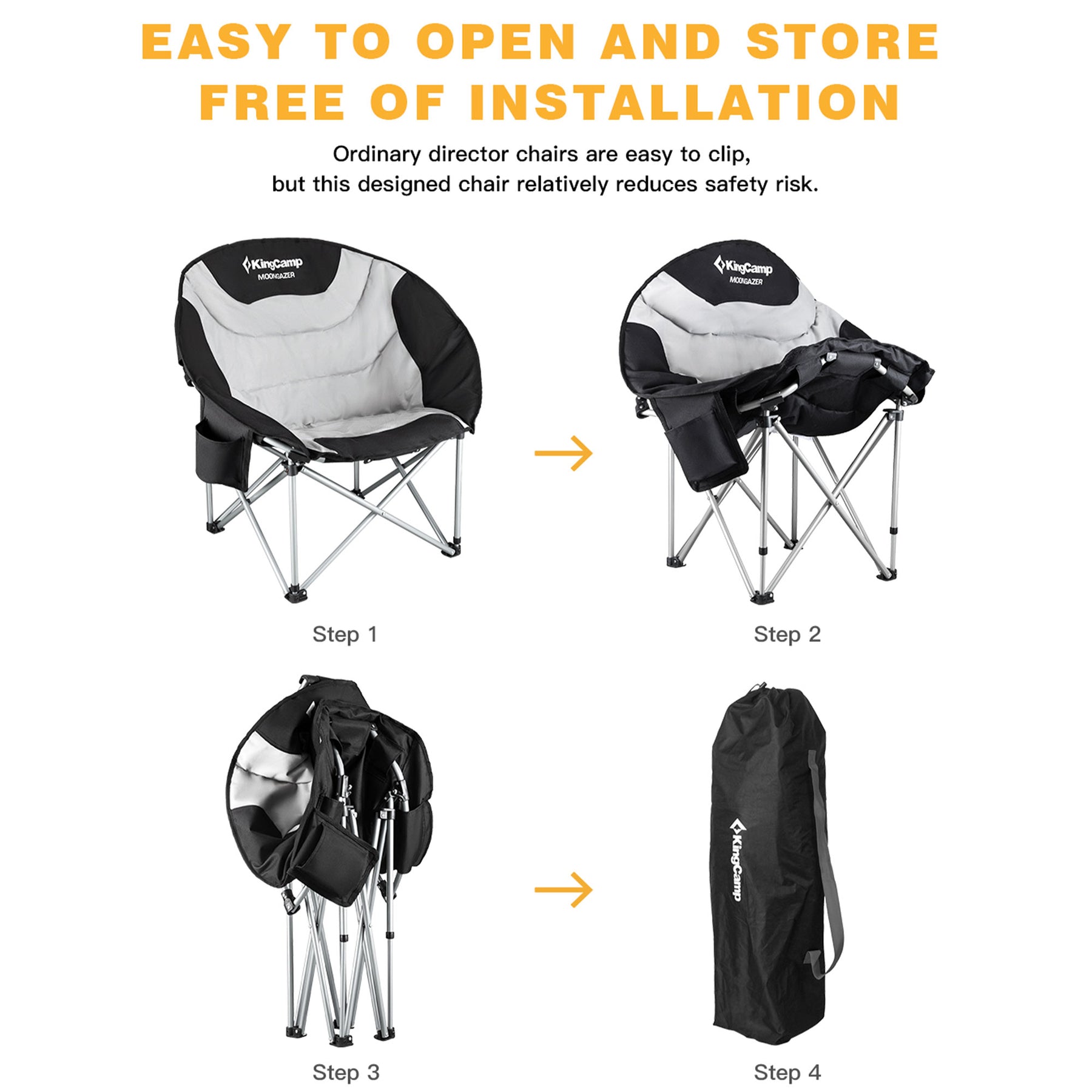 • Foldable saucer camping chair constructed from heavy-duty steel and moisture-wicking 600D Oxford fabric, enhancing overall weight capacity to 300 pounds