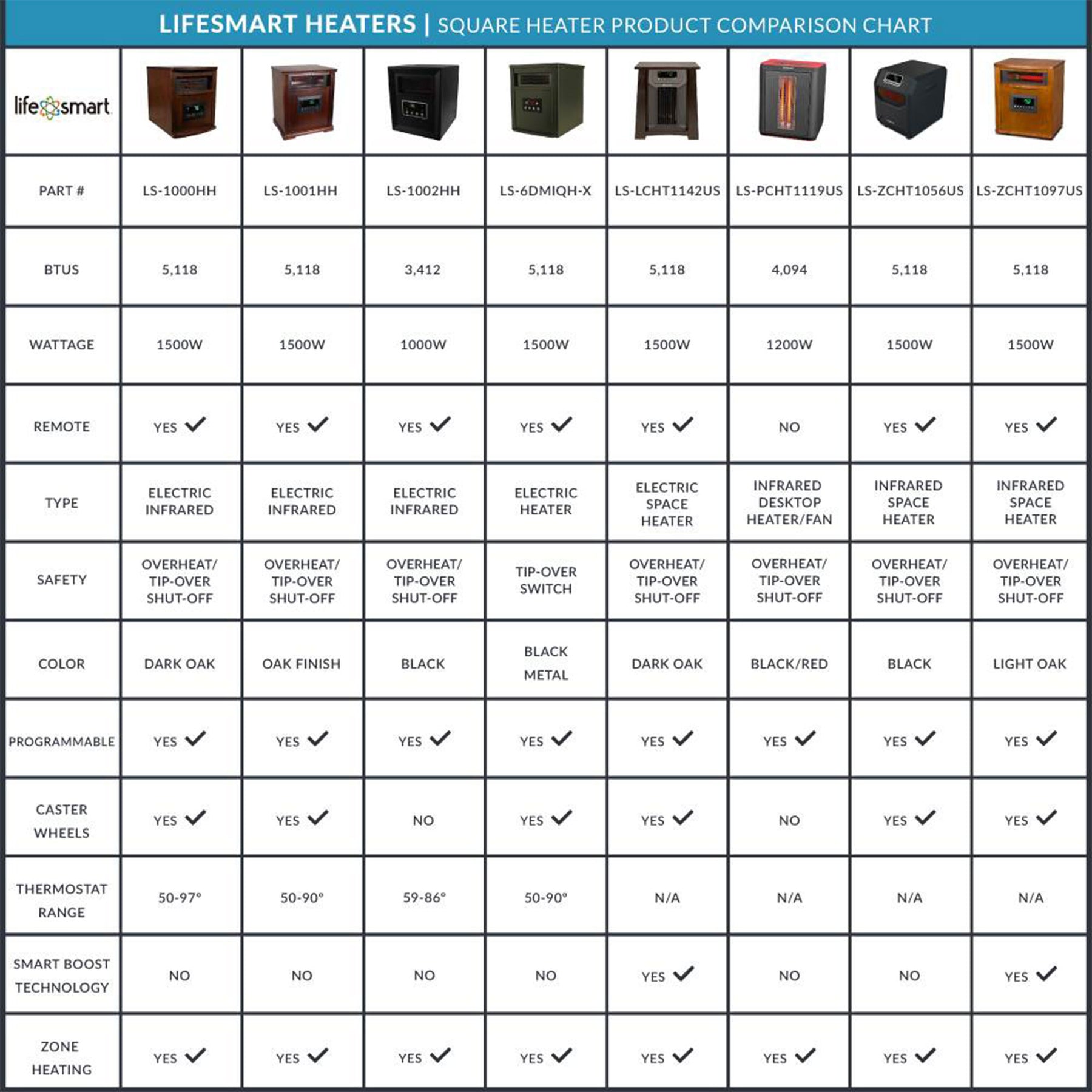 • Thermostat range: 50-90 degrees F