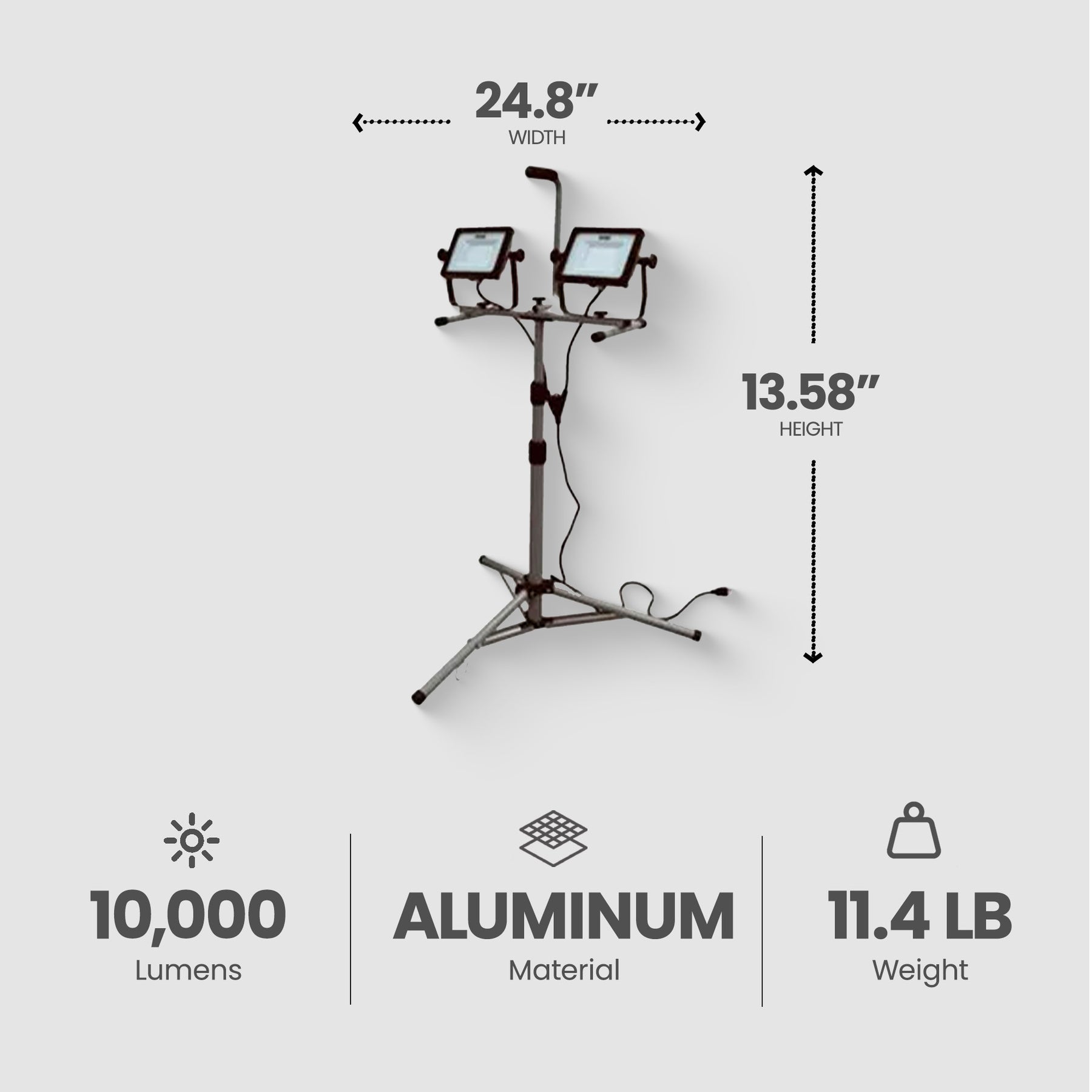 • Sturdy tripod design provides stability and adaptability, allowing you to position the work light effortlessly for optimal illumination in various work settings