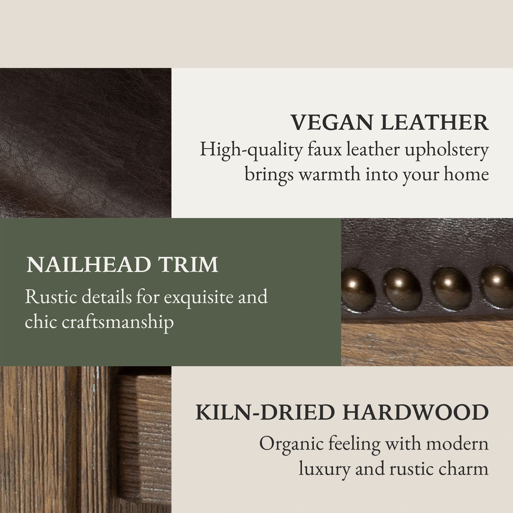 • This stool features a kiln-dried hardwood frame with mortise-and-tenon joinery, hand-applied nailhead trim, and a hand-brushed wood finish that thrives in indoor environments