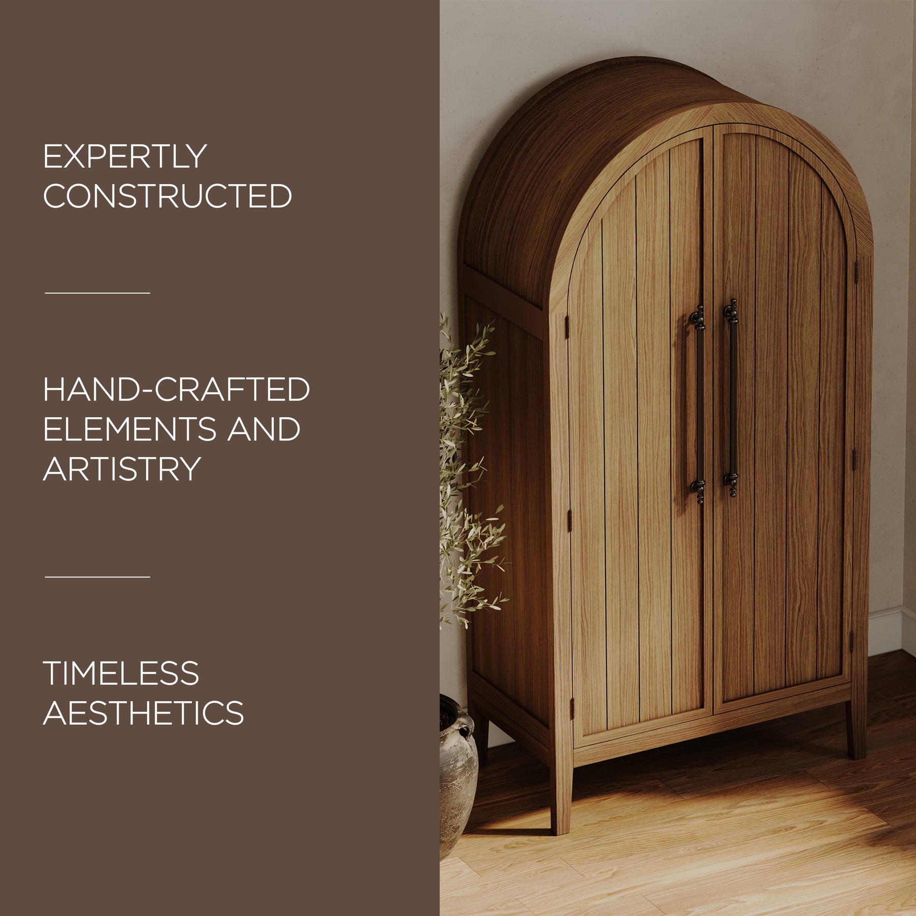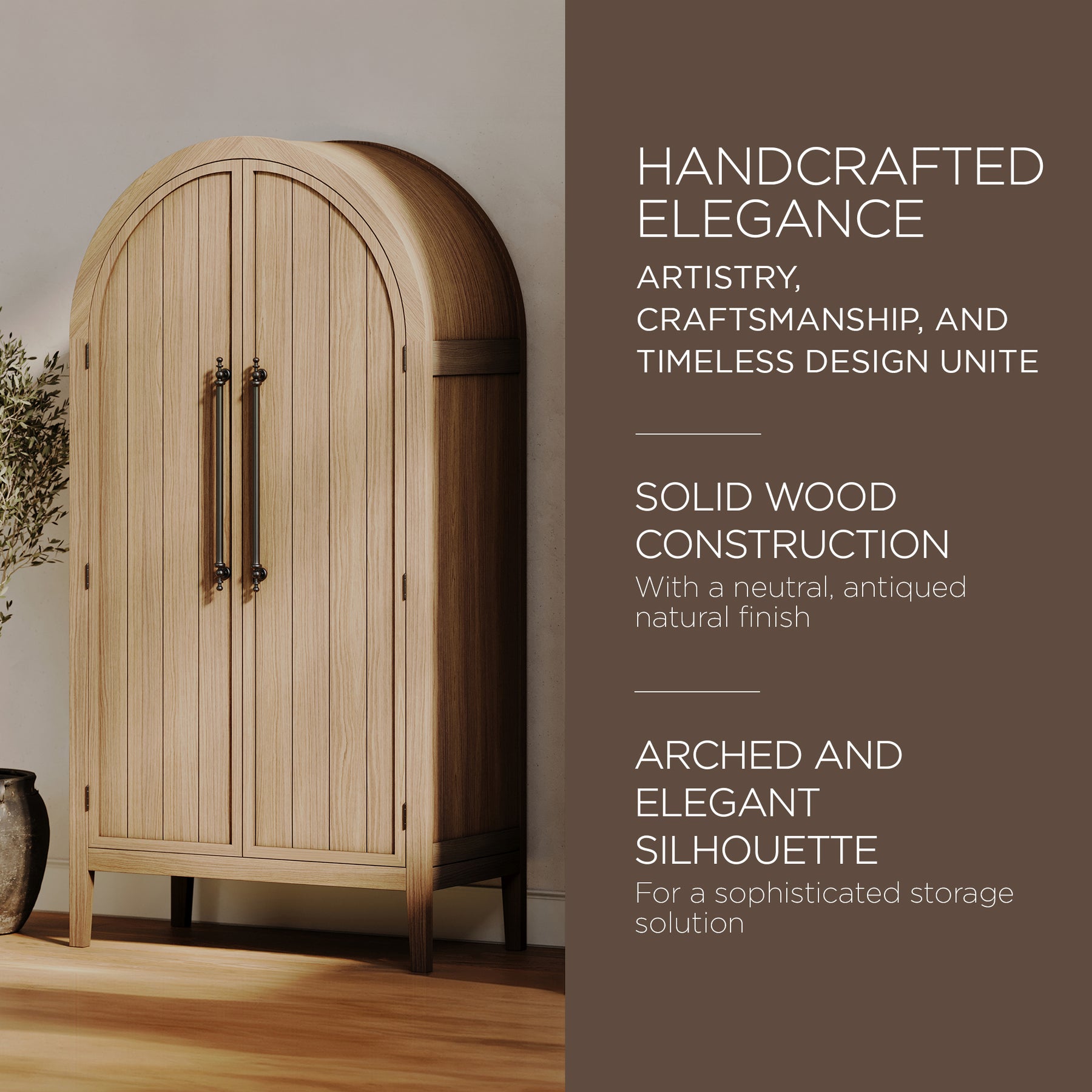 • Solid wood furniture with a neutral finish is a specialty, and this Selene Arched Cabinet delivers impeccably well