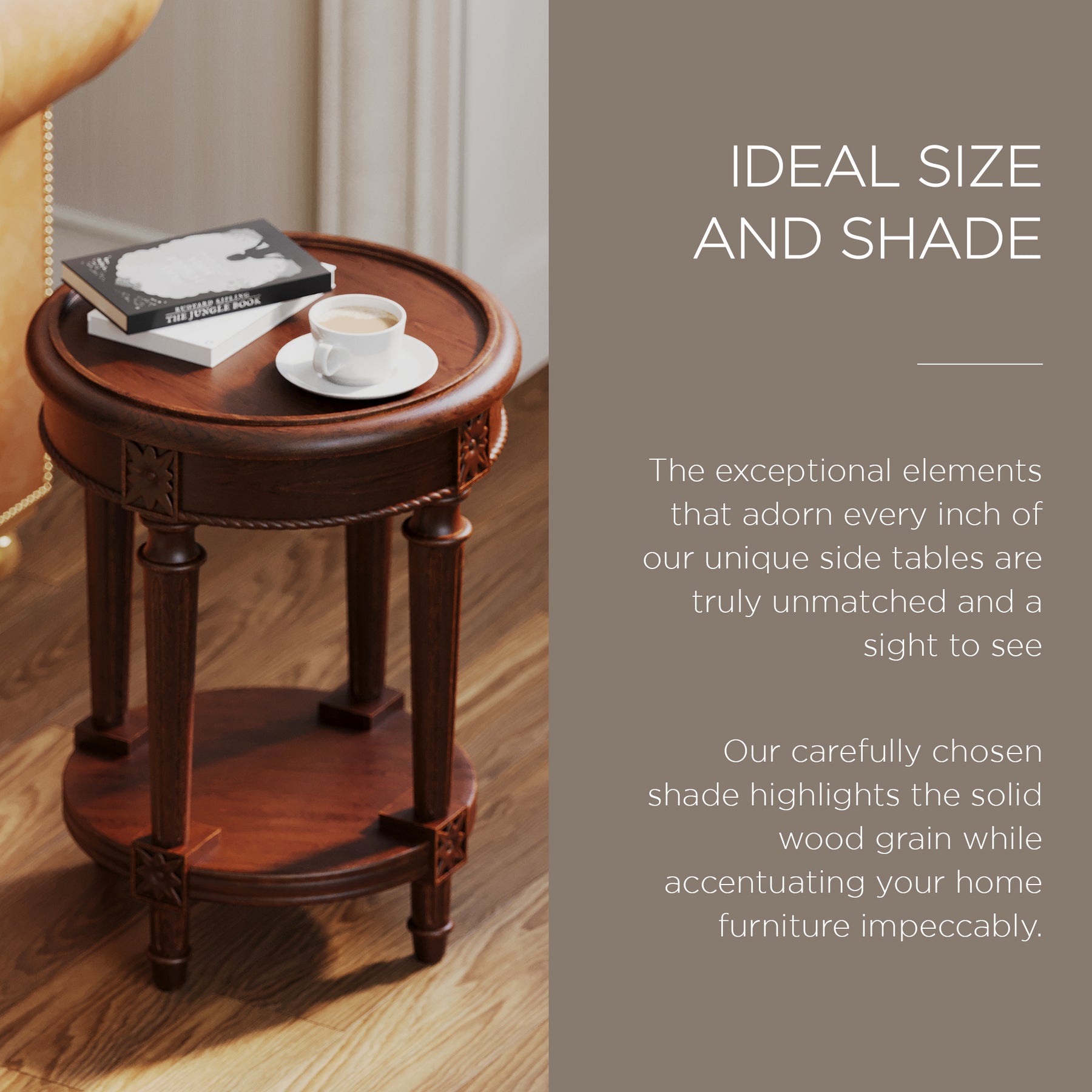 Maven Lane Traditional Round Wooden Side Table in Antiqued Brown Finish (Used)