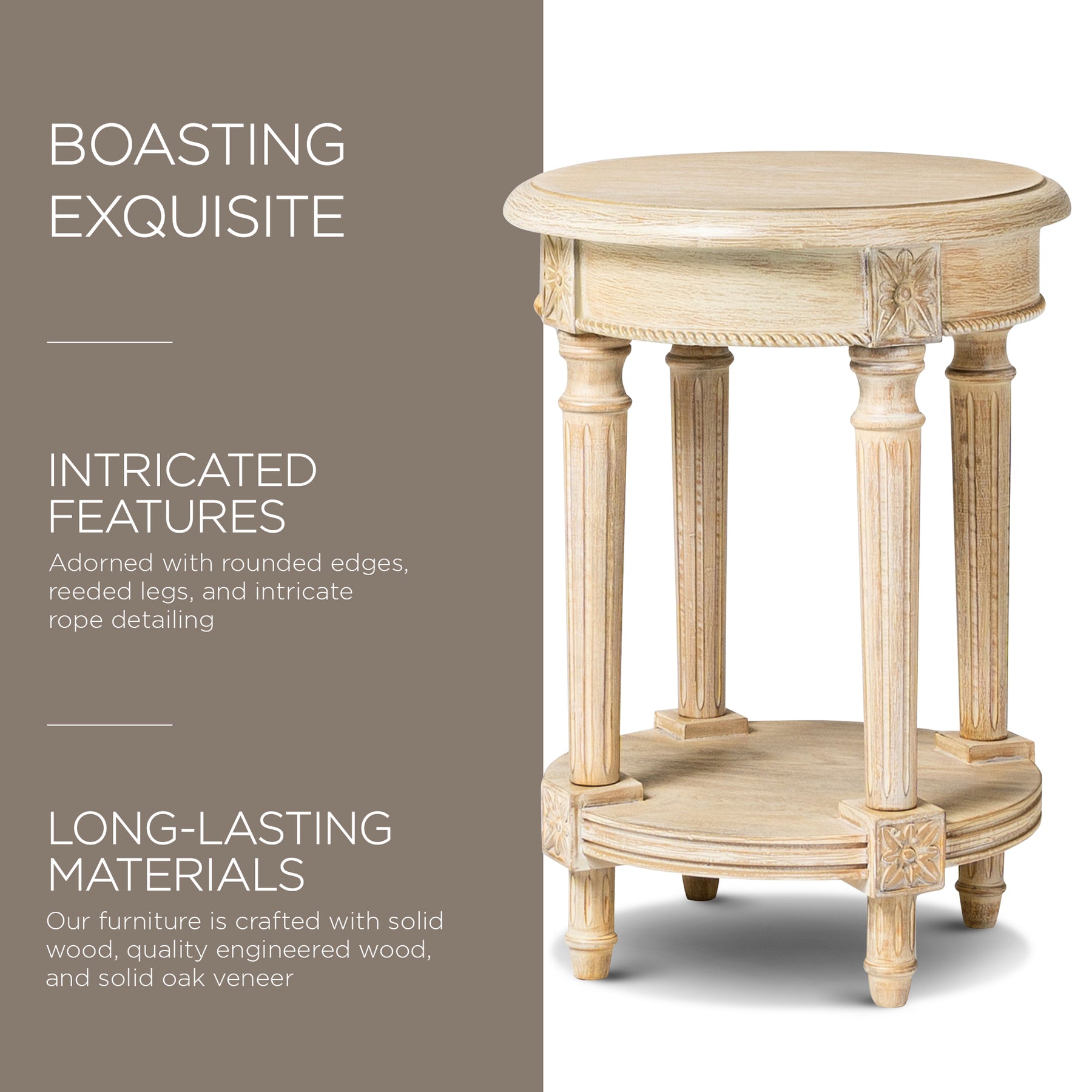 Maven Lane Traditional Round Wooden Side Table in Antiqued White Finish (Used)