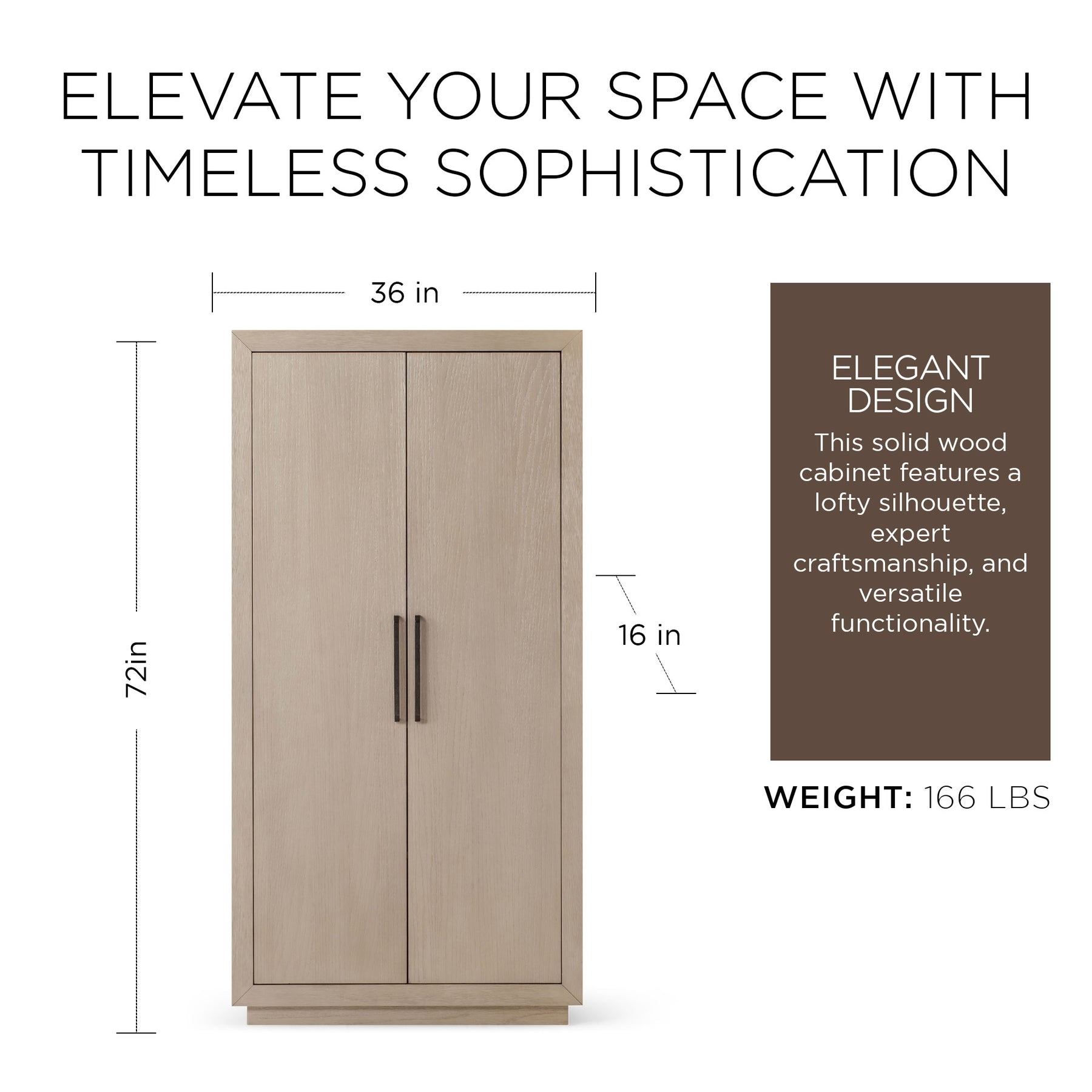 Streamlined home storage abounding with versatility and style, five spacious shelves, and ample interior vertical space, our freestanding Uma Wooden Cabinet with Doors is perfectly comfortable in your home mudroom, office, living room, or bathroom. Utilized in the most traditional sense, this real-wood pantry would be a spacious kitchen cabinet for your entertainment pieces, dining dishes, and glass stemware. If filled with your library collection, the enclosed bookcase with double doors would keep the dust away from your favorite reads. In your bedroom, you’d have an attractive armoire or wardrobe to keep your clothing and linen towels tidy and organized. The high double doors offer a sleek look, and the metal pulls lend that finishing touch to class. Pro tip: if you’re looking for a more custom built-in look, pair two Uma Storage Cabinets side-by-side—trust us, you’ll thank us later. At Maven Lane, our well-made home furniture is meticulously handcrafted with methods to stand the test of time including hand finishes displaying an impeccable attention to every small detail, and sturdy mortise-and-tenon joinery techniques which promote strength and longevity. Furthermore, by utilizing premium materials and kiln-dried hardwood in our solid wood furniture, we’ve solidified the superiority of craftsmanship you’ve come to expect from Maven Lane. Be sure to view the other pieces in our furniture collection. We've carefully curated an entire medley of heirloom-quality pieces that can be mixed and matched to create the aesthetic your home has been seeking. Given the handmade nature of our products, minimal variations may occur in color, tone, and wood finish.