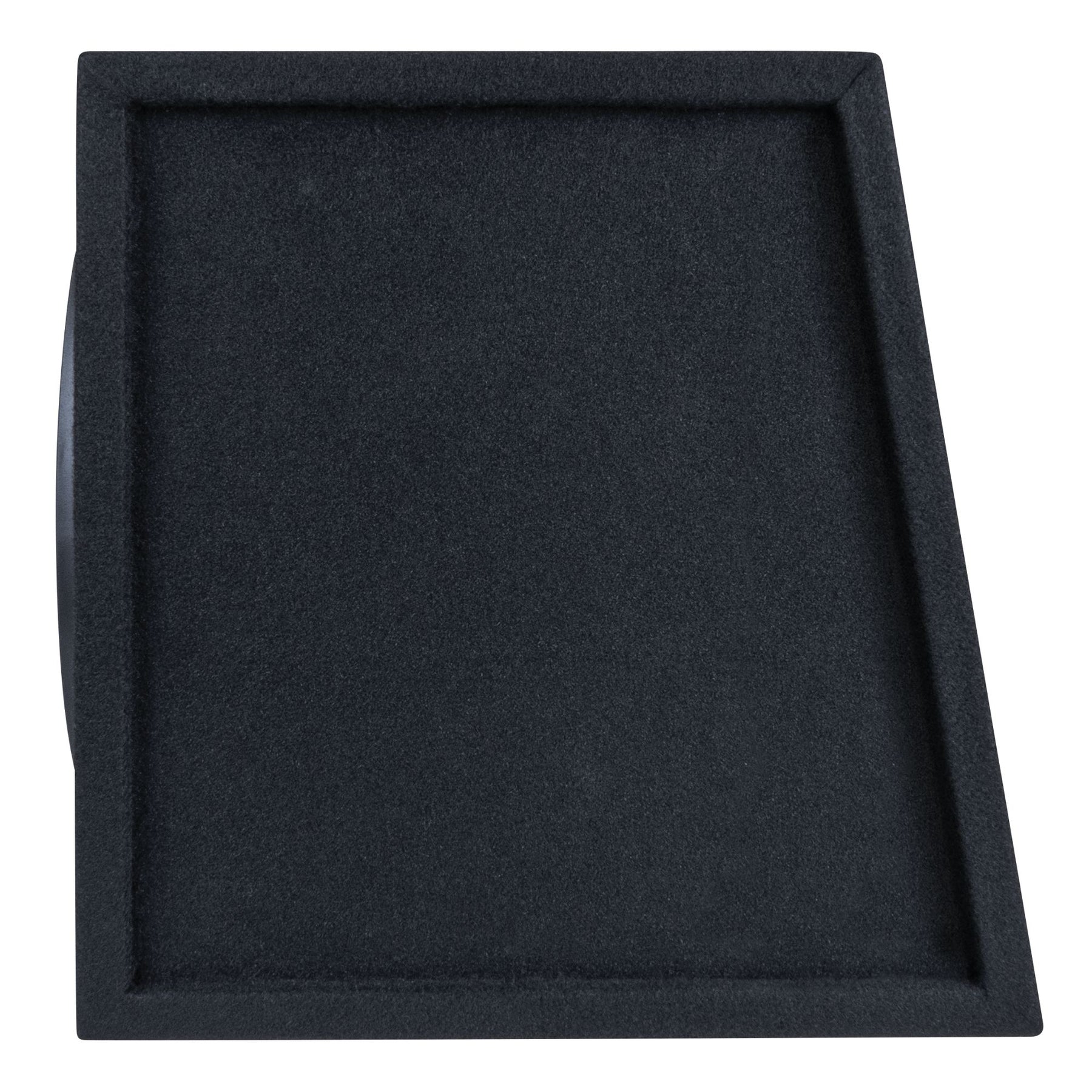 The enclosure is carefully made from strong 5/8-inch MDF (Medium Density Fiberboard), ensuring the necessary structural integrity for outstanding sound quality. Its black carpet cover not only adds a stylish touch but also keeps your subwoofers securely in position.