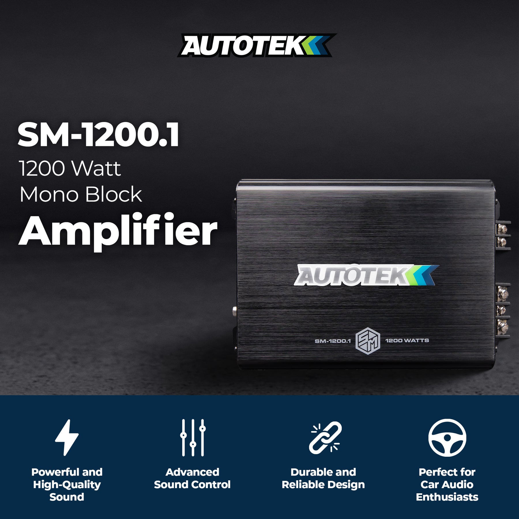 Transform your car audio experience with the Autotek 1200-Watt 1-Channel Car Audio Amplifier. Designed for powerful, high-quality sound, this Class D amplifier delivers deep bass and crystal-clear highs, making every ride feel like a concert. Whether you're powering subwoofers or speakers, the high-output power supply ensures efficient performance, while the Pro-Fi High-Speed technology minimizes distortion for a clean, rich sound. With a low-noise preamplifier circuit and RCA inputs, you get a pure audio signal with minimal interference, keeping your music crisp and detailed.