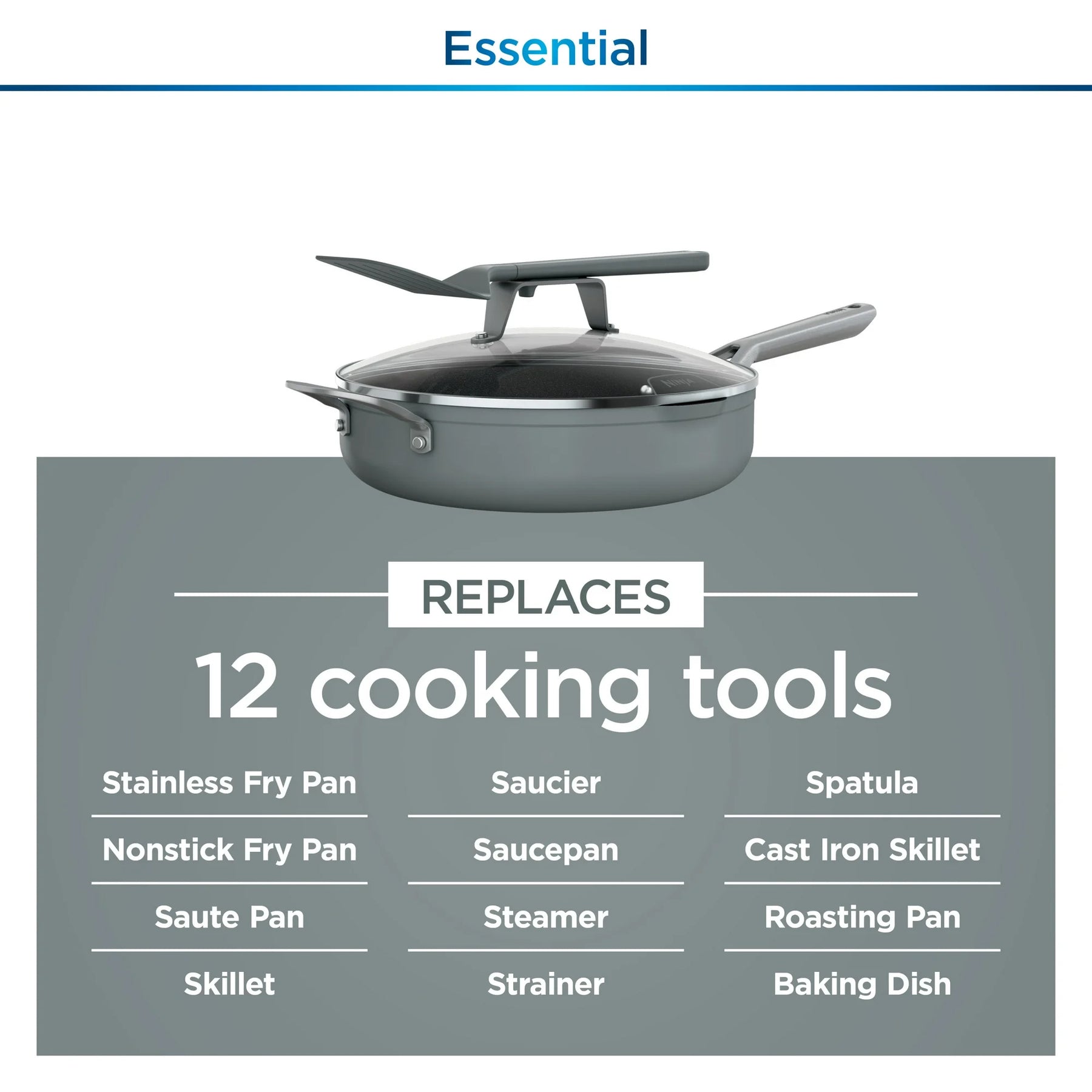 • Replaces 12 tools like fry pans, saucepans, and baking dishes