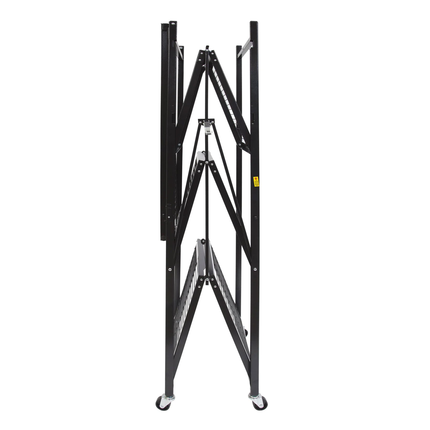 Origami R5 Foldable 4 Tier Storage Rack w/ Wheels, Black, (Open Box)