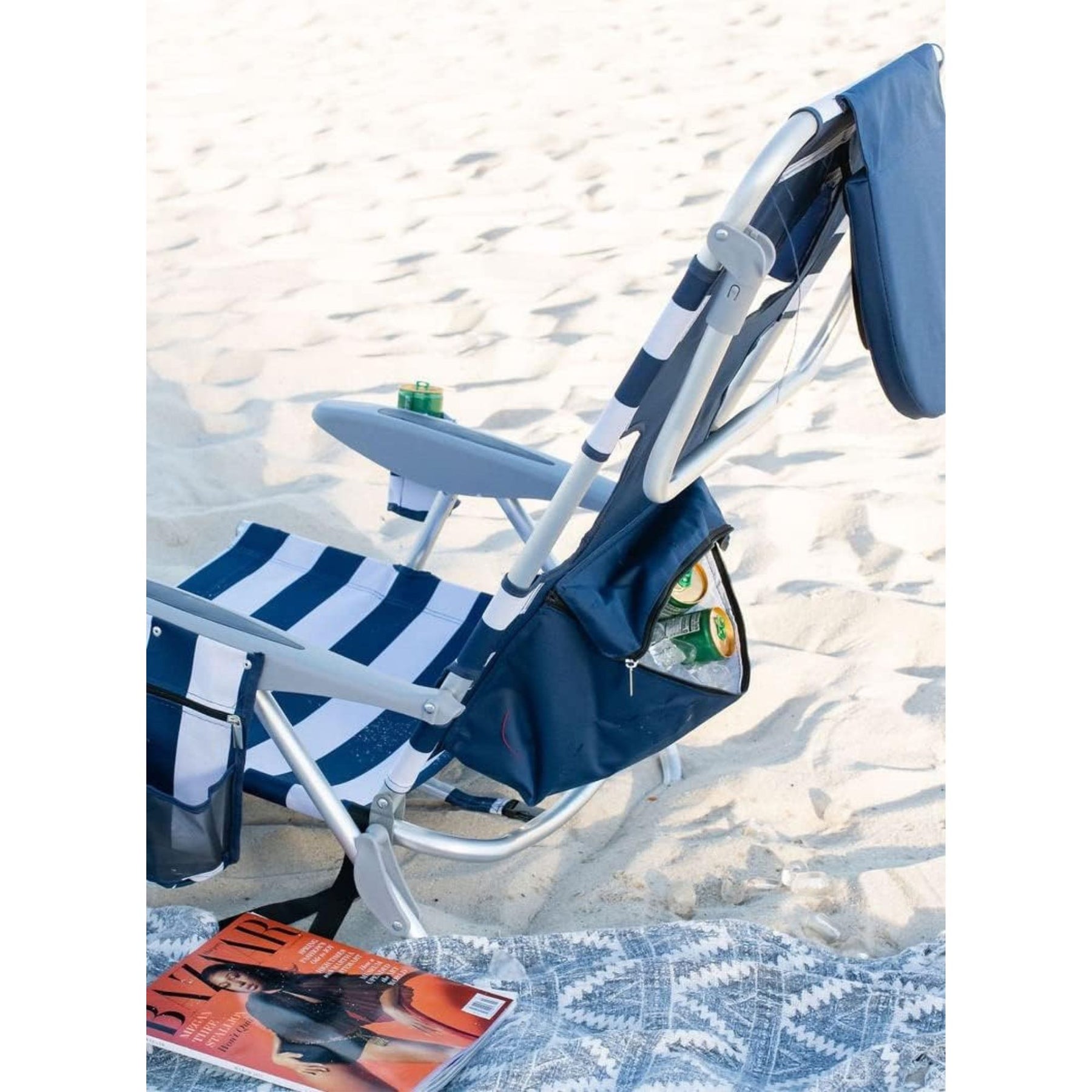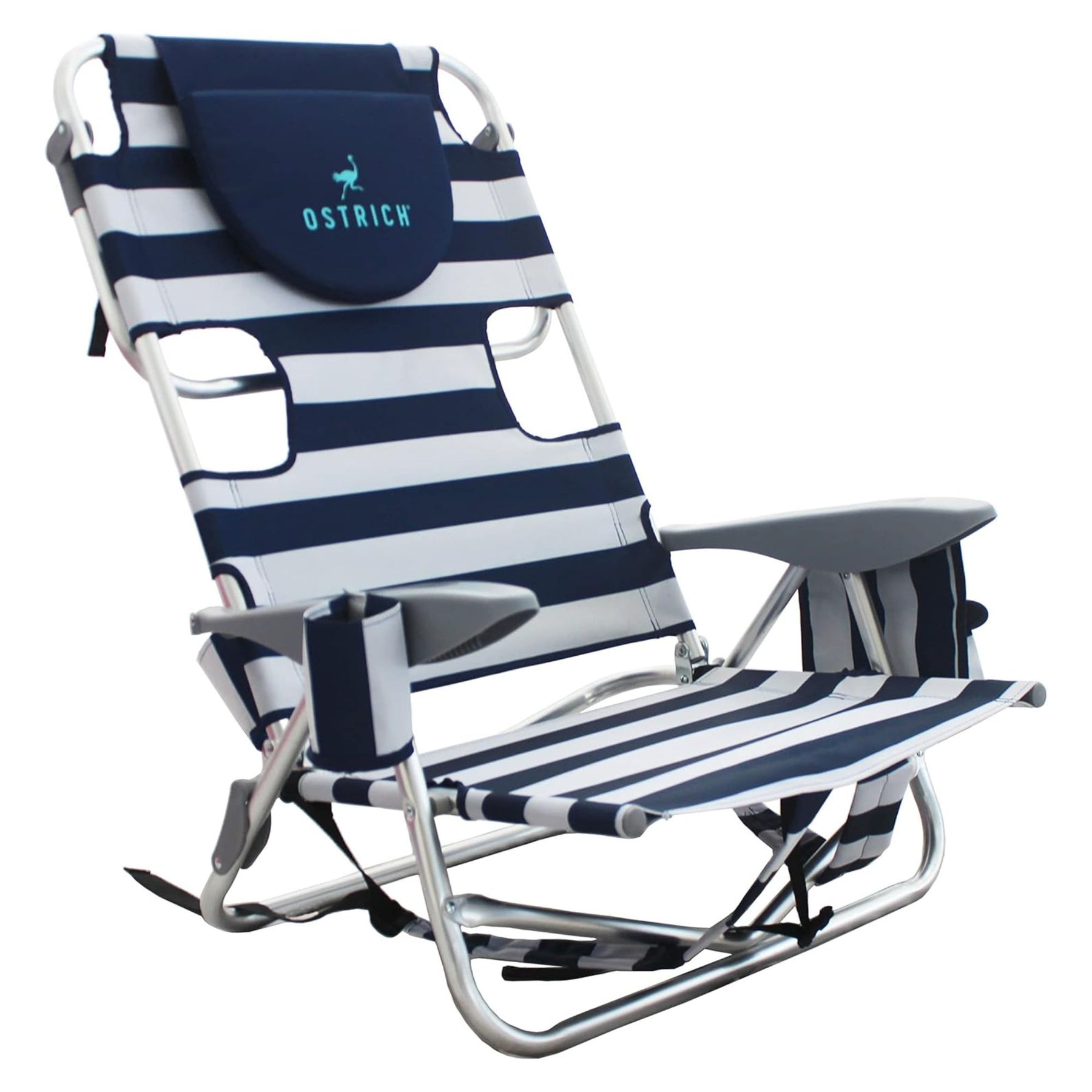 Ostrich Deluxe Backpack Reclining Beach Pool Camping Chair, Striped (Open Box)
