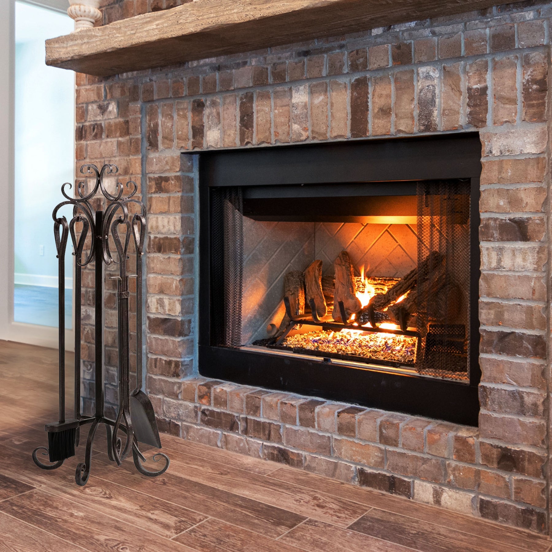 • Steel 5-piece fireplace tool set designed to make maintaining your fire, wood stove, or small fireplace easy and secure with everything you need