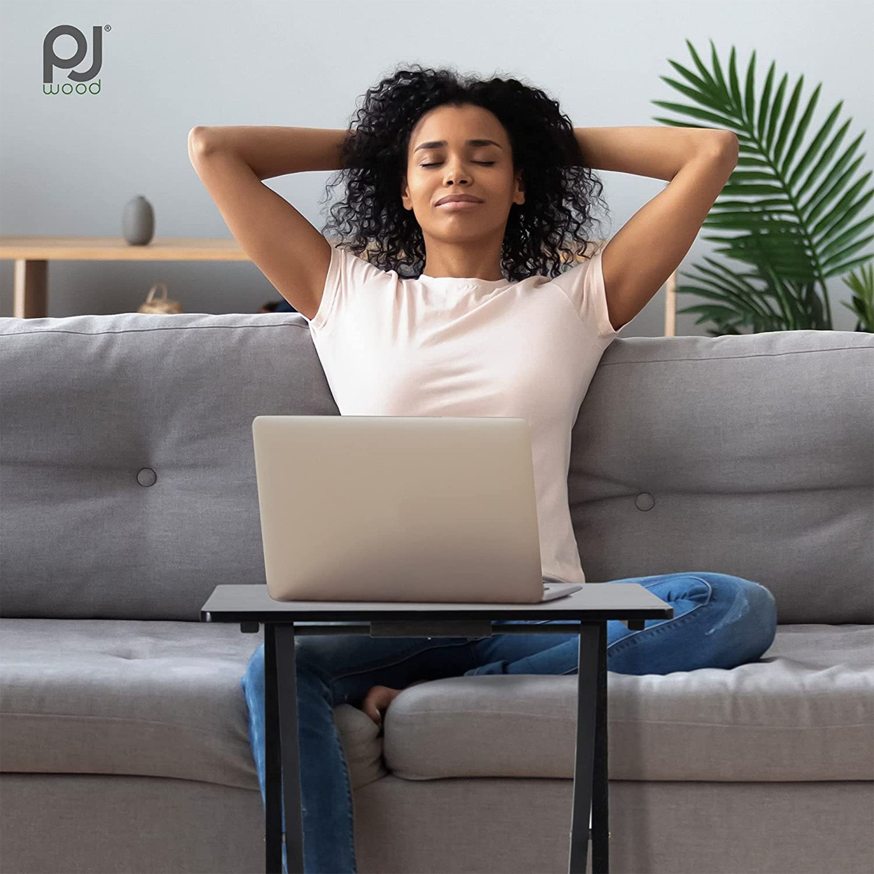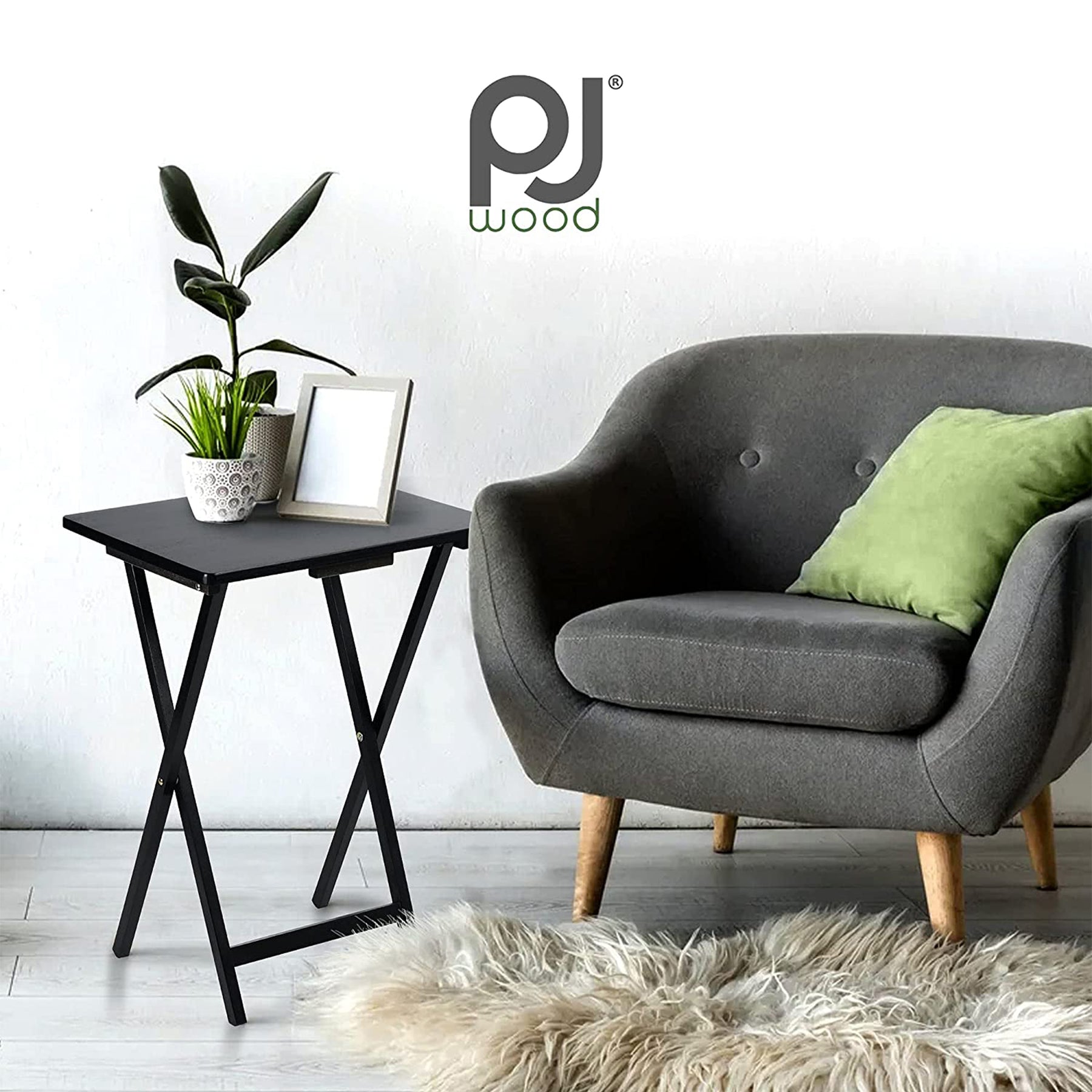 PJ Wood Folding TV Tray, Portable Snack Tables, Black, 2Pc (Open Box)