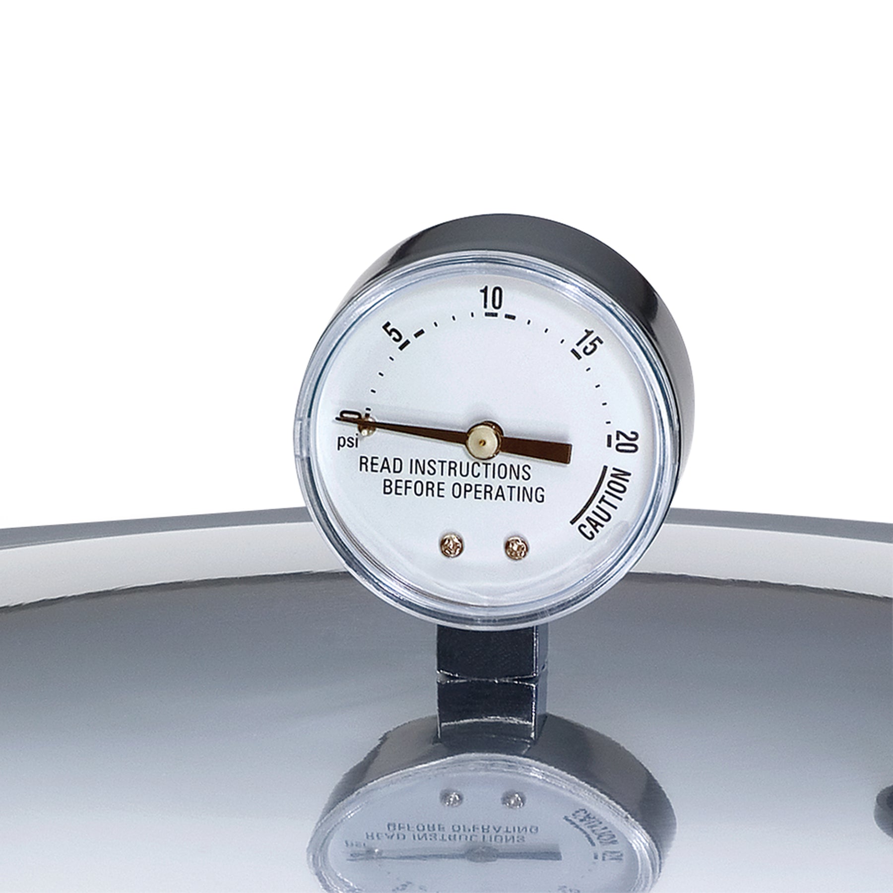 • Pressure canner, induction capable, with gauge that safely helps the canning process for meats, poultry, fish, vegetables, and other low-acid foods