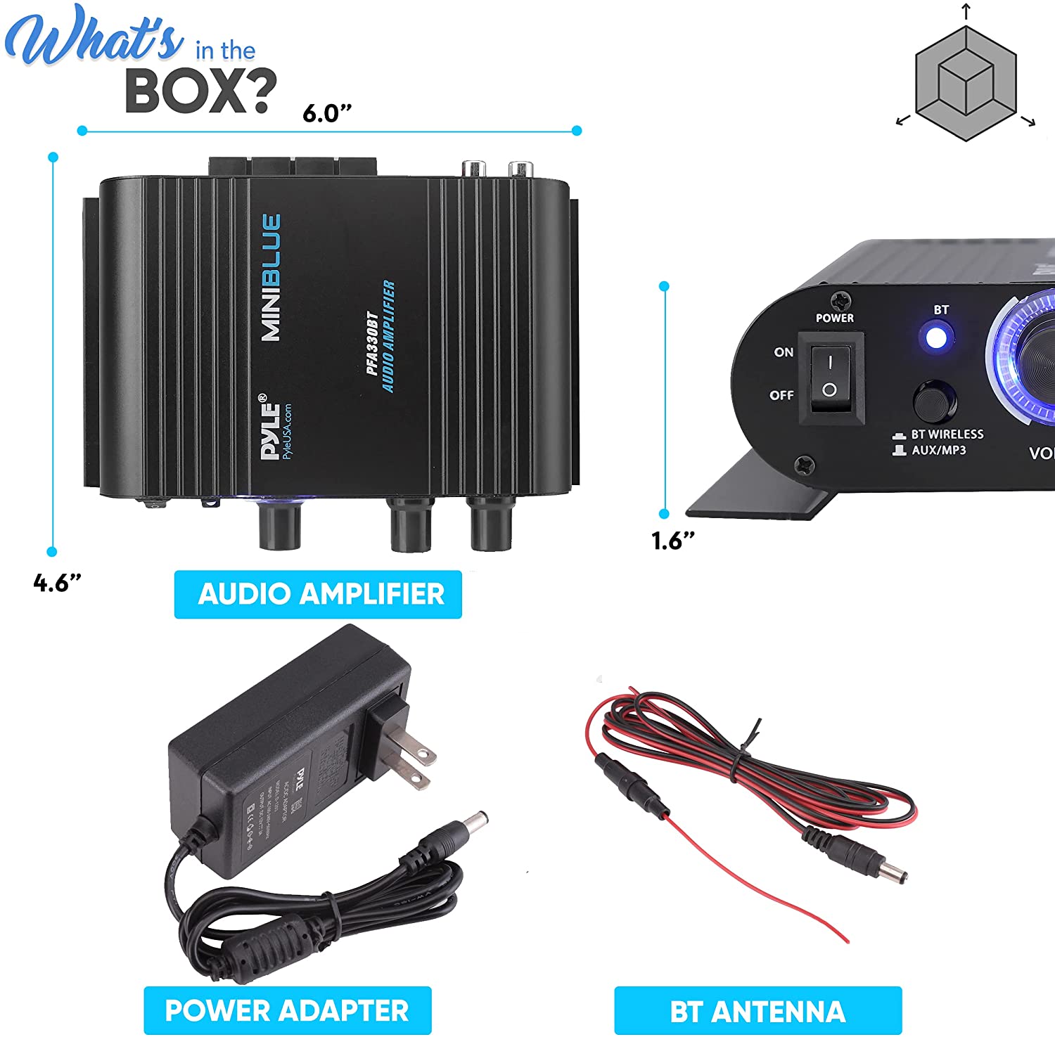 Pyle 90 Watt 8 Ohm Bluetooth Mini Blue Home Studio Class T Amplifier (Open Box)